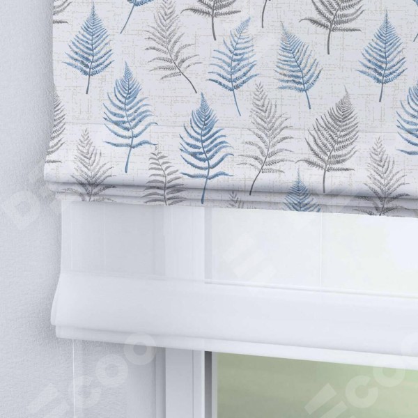 Двойная римская штора «День-ночь» от производителя Cortin предназначена для использования в проёмах. Эта штора уникальна тем, что состоит из двух полотен. На лицевой стороне находится блэкаут с нанесением сублимационной печати «Королевский папоротник», обеспечивающий эффективное затемнение. В комплект также входит вторая ткань — легкий белый тюль (артикул: V-01), который добавляет изящества и легкости оформлению окна. Кроме того, доступны и другие разновидности ткани тюль, выбор которых доступен по  ссылке .