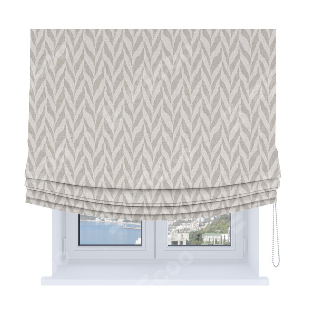 Римская штора Soft производителя «Cortin», используется для проёма, пошита из ткани блэкаут с нанесением сублимационной печати «Песочный зебрано». Имеет универсальный механизм и подходит для монтажа: на потолок, на стену и в нишу. В отличие от стандартных римских штор, римская штора Soft не имеет горизонтальных вставок и нижнего отвеса. Это позволяет ткани произвольно драпироваться в свободные мягкие складки.