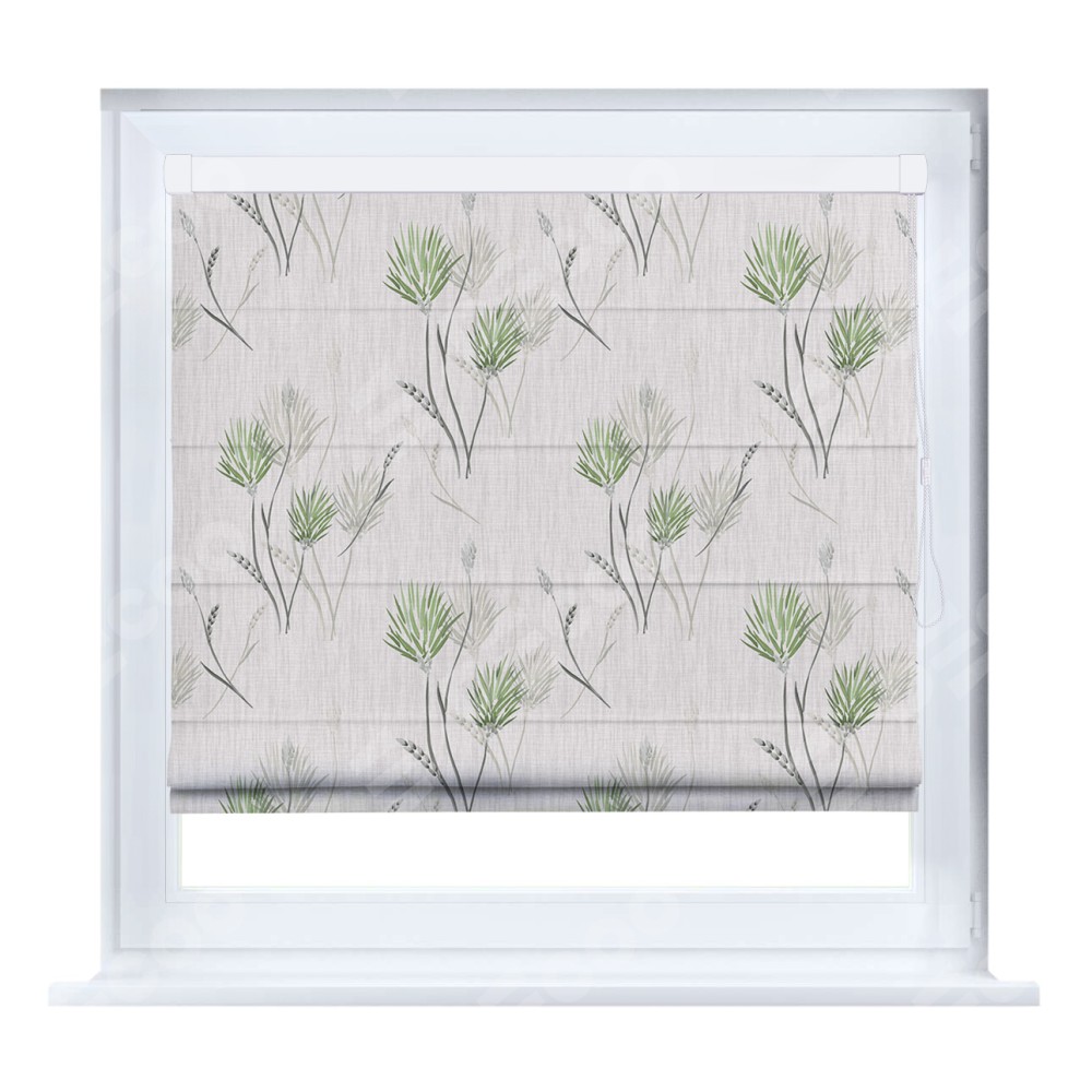 Римская штора производителя «Cortin», устанавливается на створку окна, пошита из ткани блэкаут с нанесением сублимационной печати «Полевые травы бежевый». Штора шьётся по индивидуальным размерам, для данного типа римской шторы возможная ширина от 35 до 150 см., высота до 250 см.