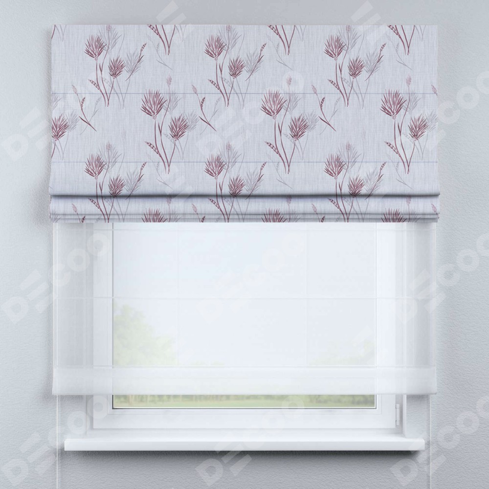 Двойная римская штора «День-ночь» от производителя Cortin предназначена для использования в проёмах. Эта штора уникальна тем, что состоит из двух полотен. На лицевой стороне находится блэкаут с нанесением сублимационной печати «Полевые травы серый», обеспечивающий эффективное затемнение. В комплект также входит вторая ткань — легкий белый тюль (артикул: V-01), который добавляет изящества и легкости оформлению окна. Кроме того, доступны и другие разновидности ткани тюль, выбор которых доступен по  ссылке .