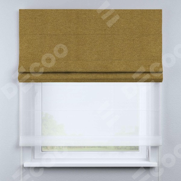 Римская штора «Кортин», твид блэкаут горчица, день-ночь