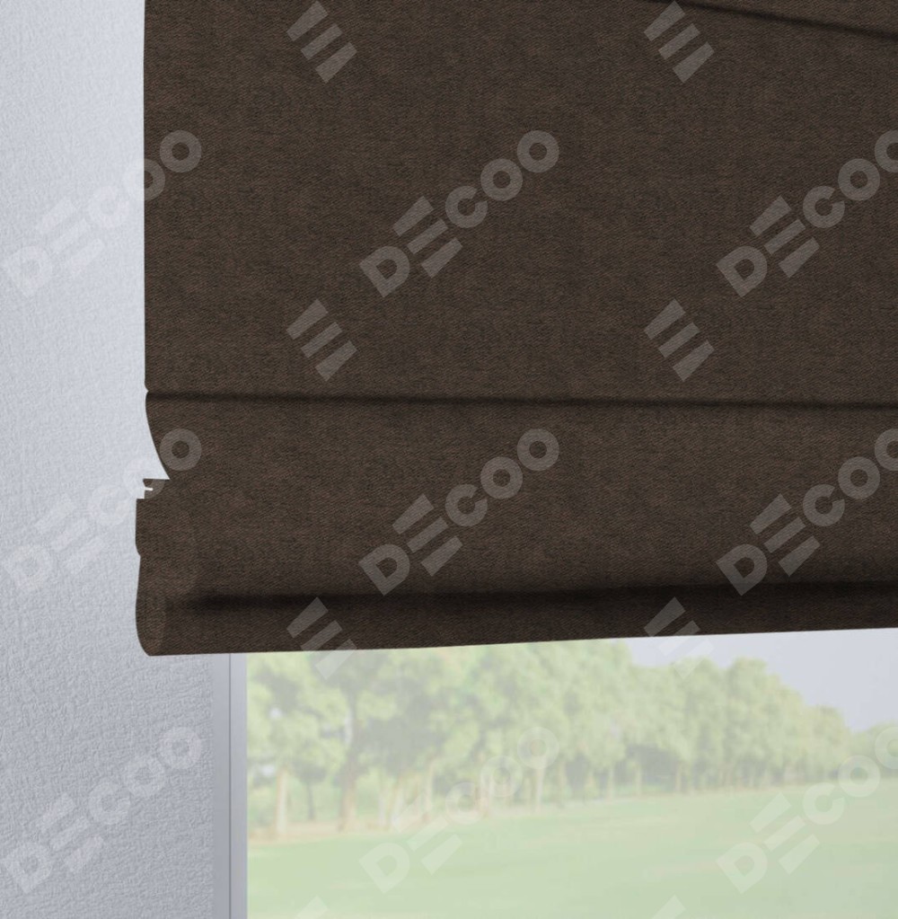 Римская штора производителя «Cortin», используется для проёма, пошита из ткани твид блэкаут тёмно-коричневый, артикул ткани 90933. Данная модель пошита на петлях, комплектуется на выбор круглым карнизом и подходит для монтажа на стену. Римская штора на петлях имеет простую систему регулировки высоты, отличительным преимуществом данной модели является простой способ монтажа. Достаточно повесить ее на трубу и штора готова!