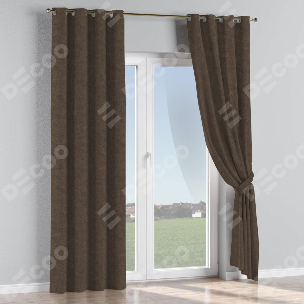 Комплект штор твид блэкаут тёмно-коричневый, на люверсах