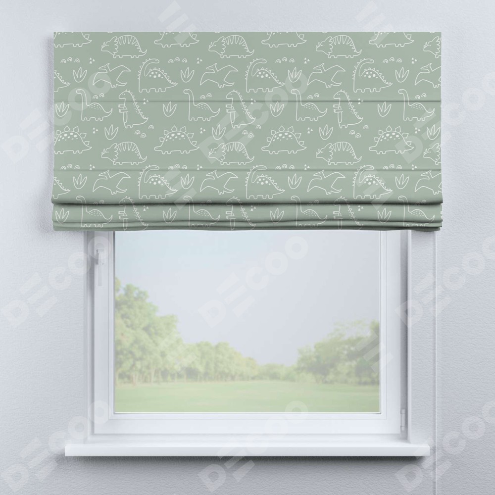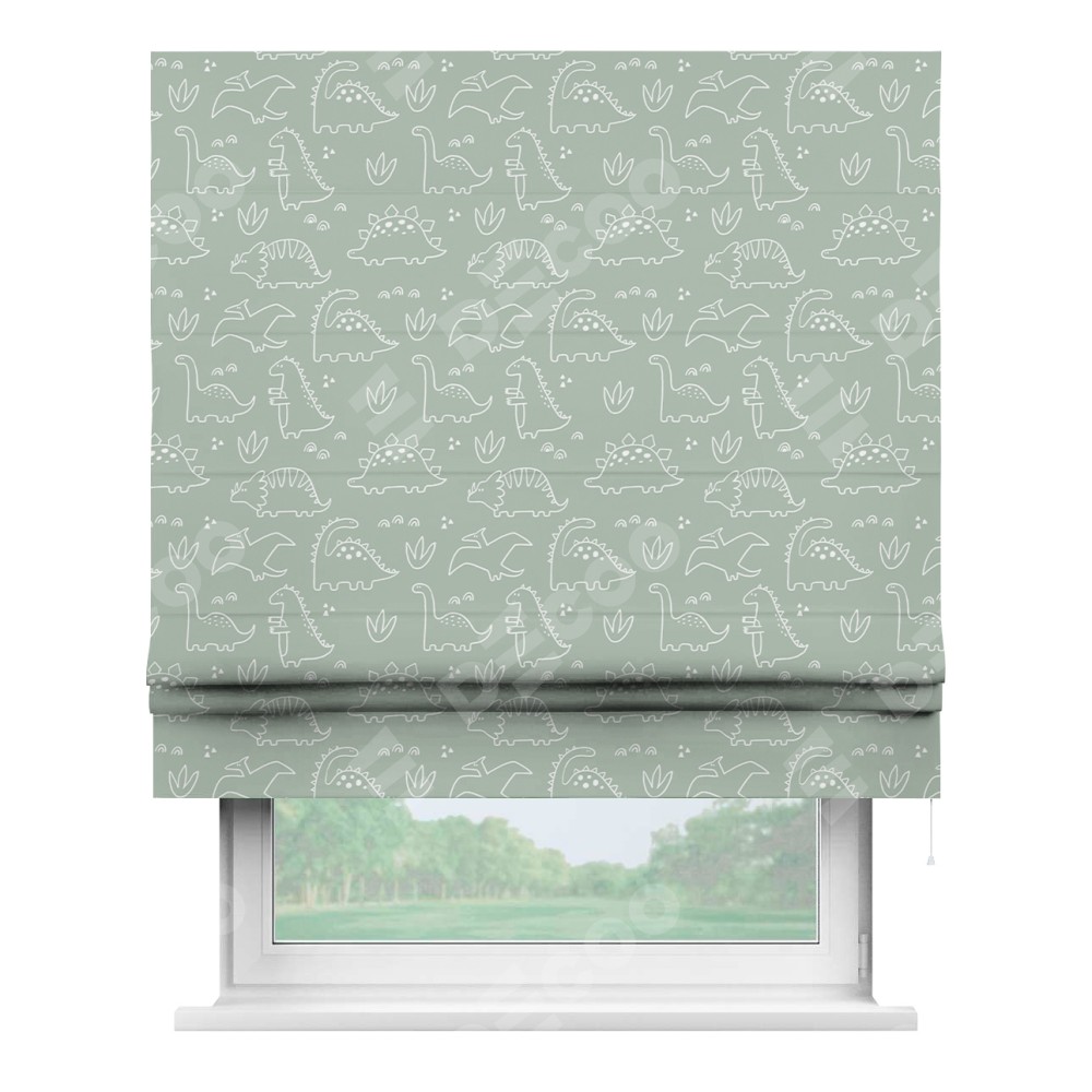 Классическая римская штора производителя «Cortin», пошита из ткани блэкаут с нанесением сублимационной печати «Динопарк». Имеет универсальный механизм и подходит для монтажа: на потолок, на стену и в нишу.