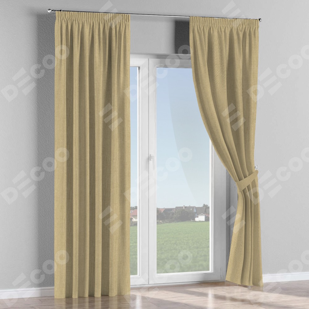 Комплект штор лён димаут песочный, на тесьме «Карандаш»
