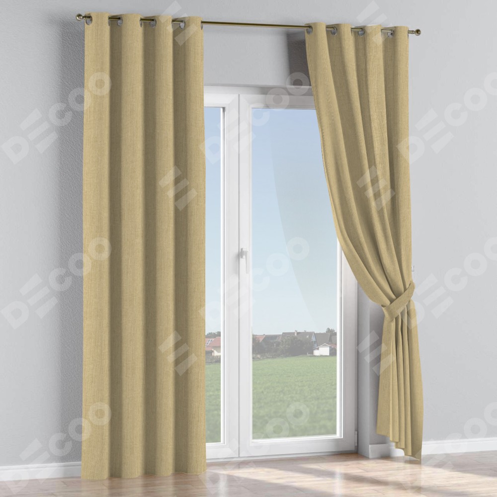 Комплект прямых штор, от производителя «Cortin», пошиты из ткани лён димаут песочный, артикул ткани 16256. Данная модель пошита на люверсах, комплектуется на выбор круглым карнизом и подходит для монтажа на стену или потолок. Прямые шторы на люверсах шьются по стандарту с коэффициентом 1/2 (на 100 см. ширины проёма 200 см. ширины ткани), отличительным преимуществом данной модели является простой способ монтажа. Достаточно повесить ее на трубу и штора готова!