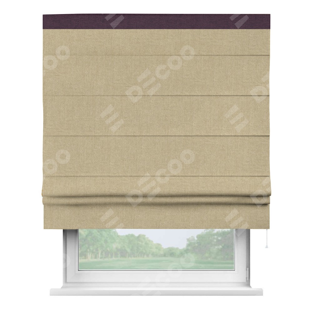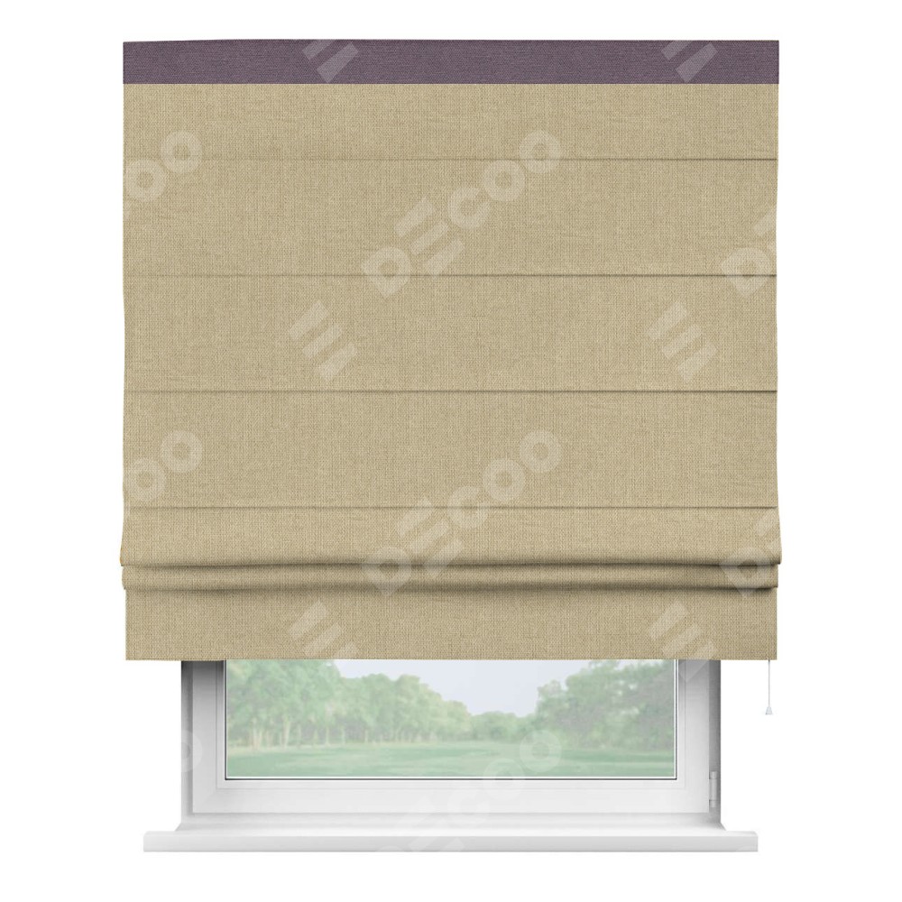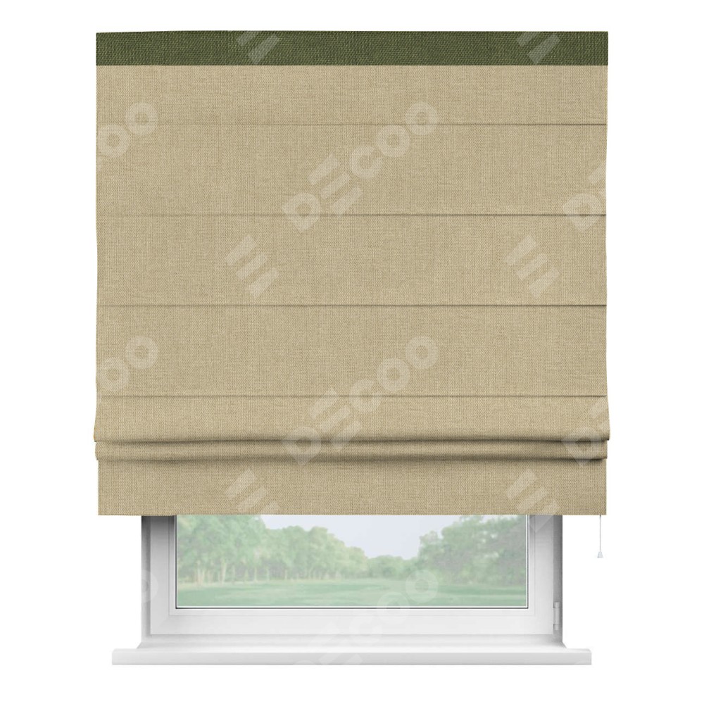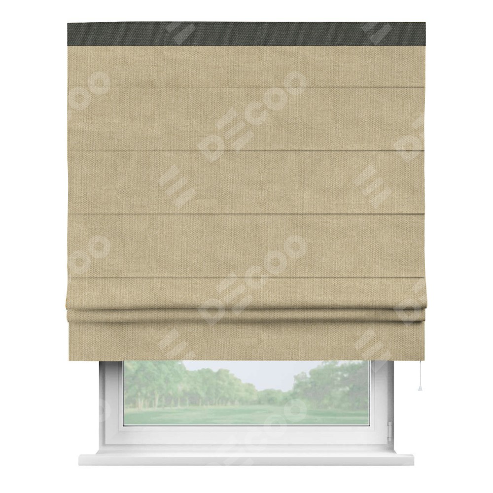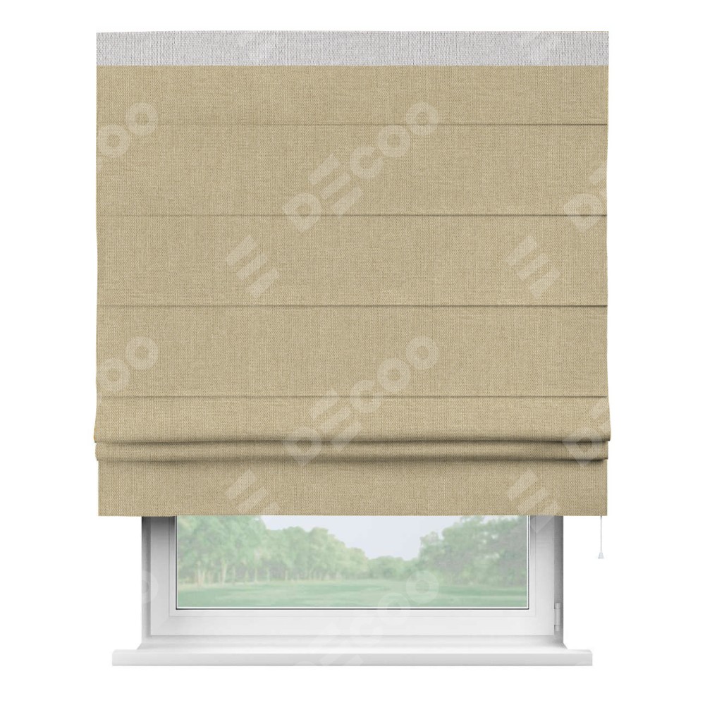 Римская штора «Кортин» для проема, лён димаут песочный с кантом Кинг