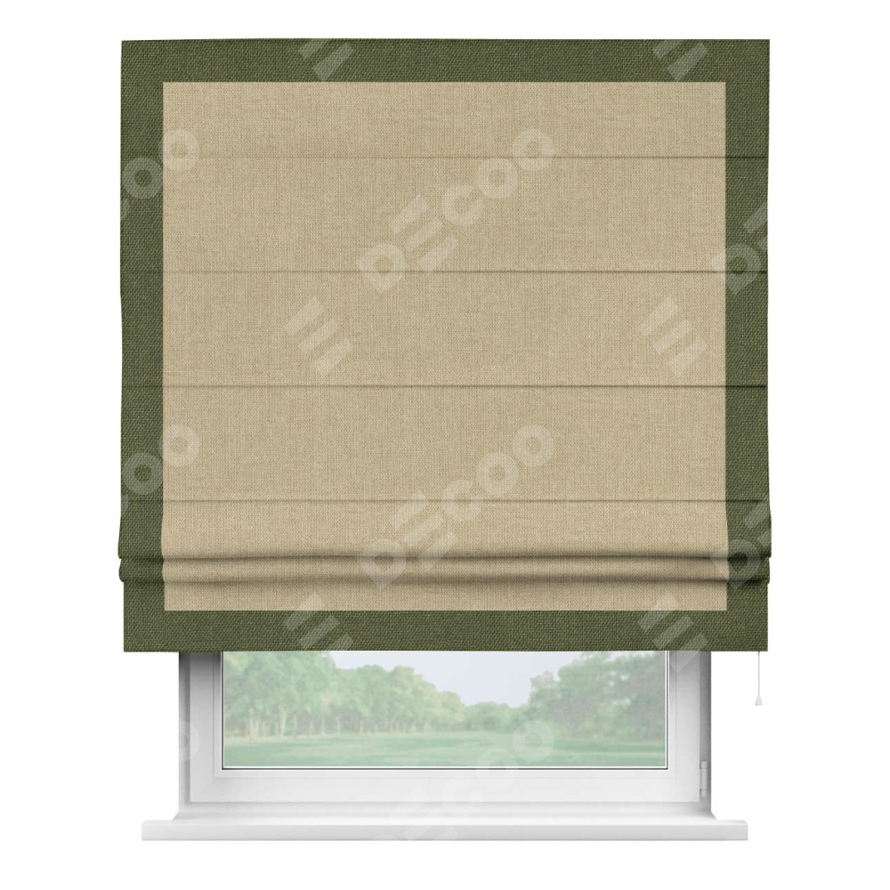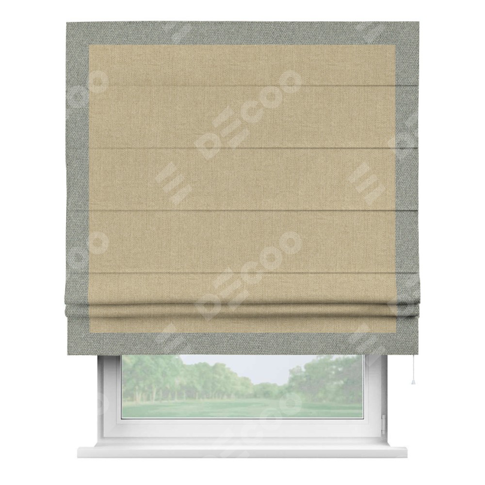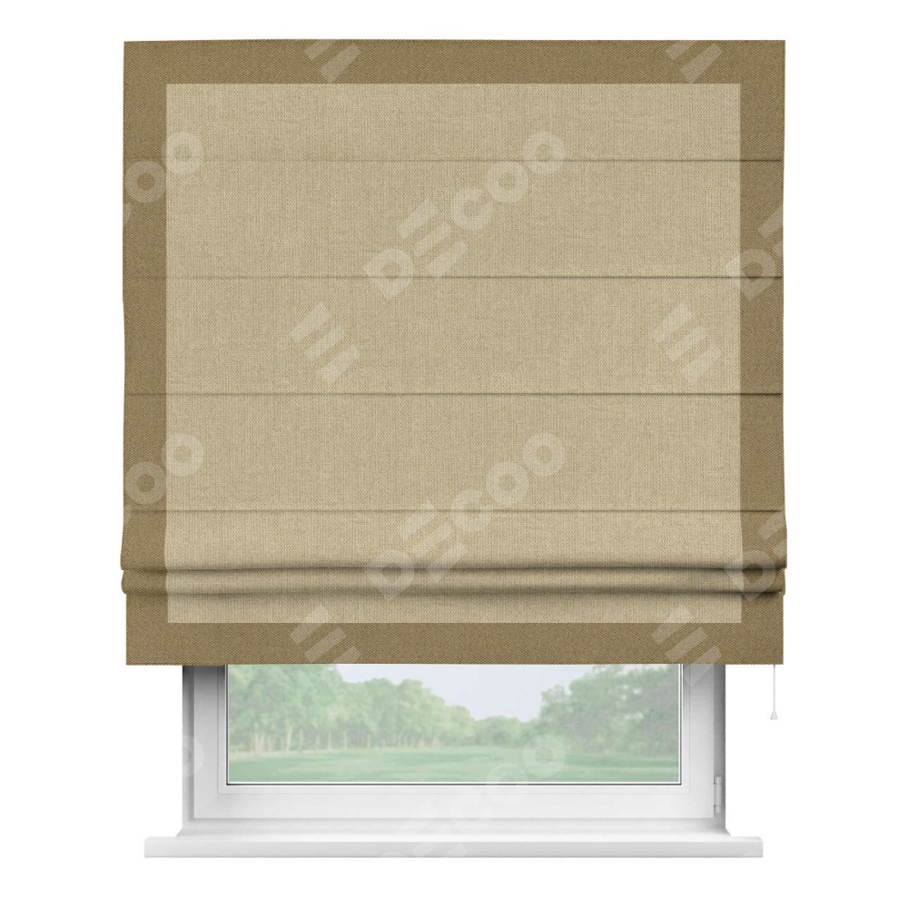 Римская штора «Кортин» для проема, лён димаут песочный с кантом Чесс