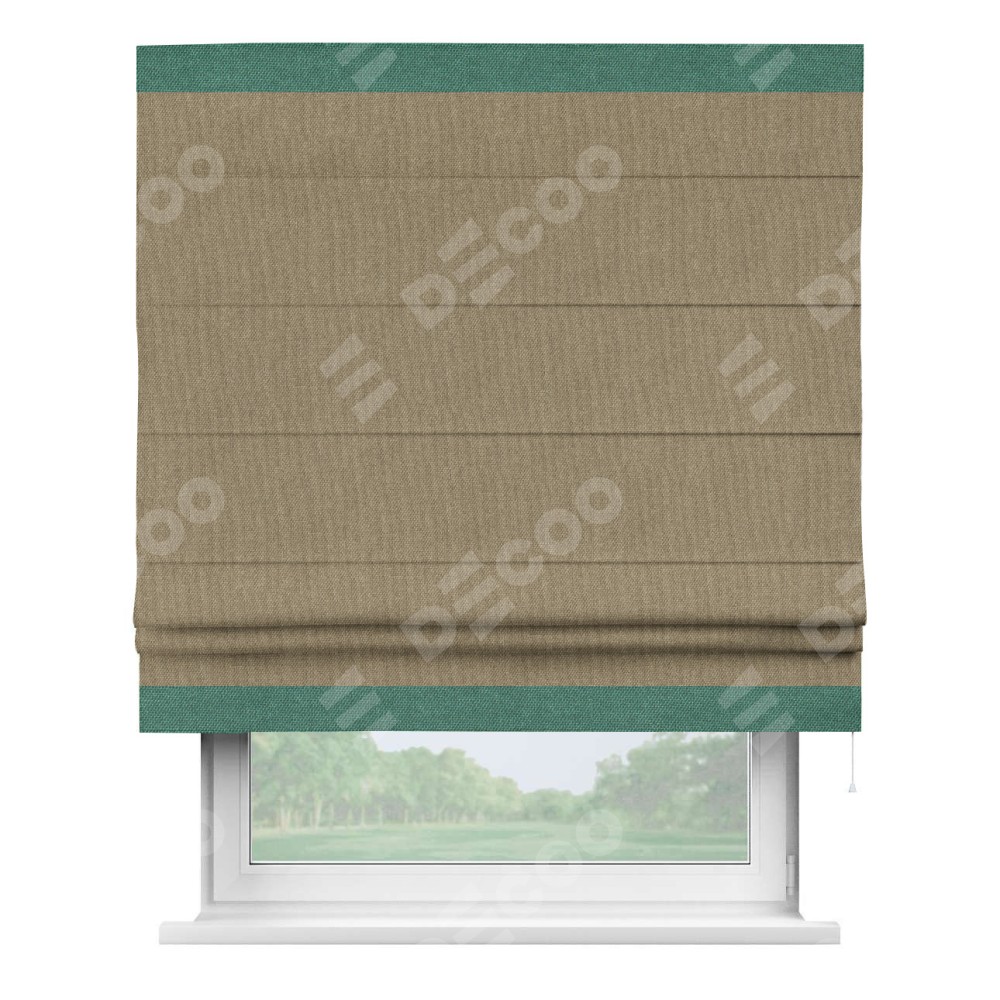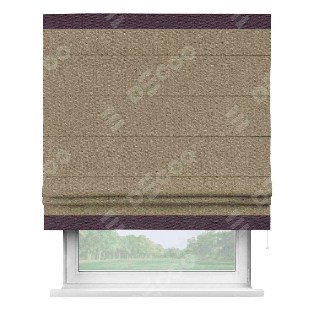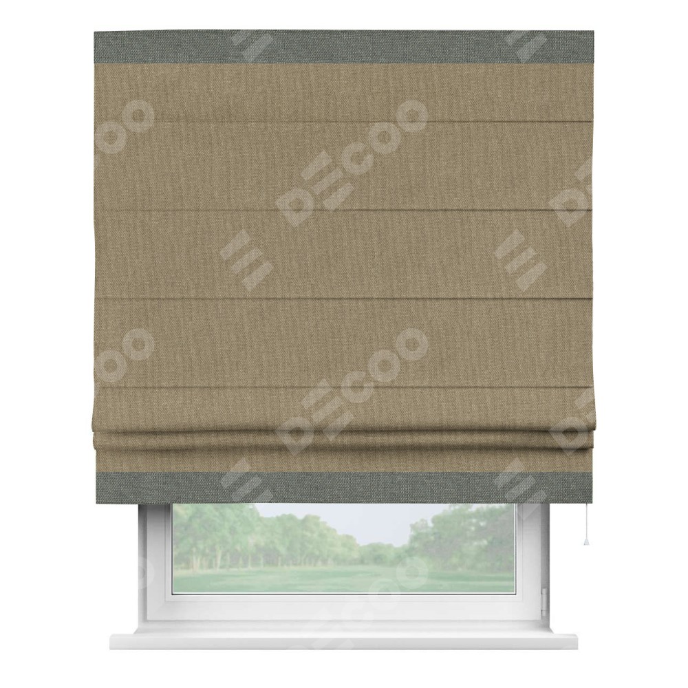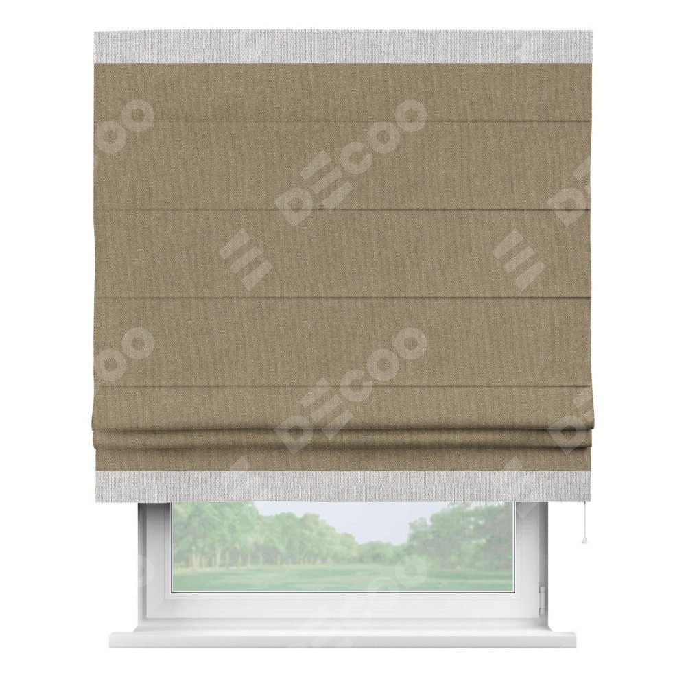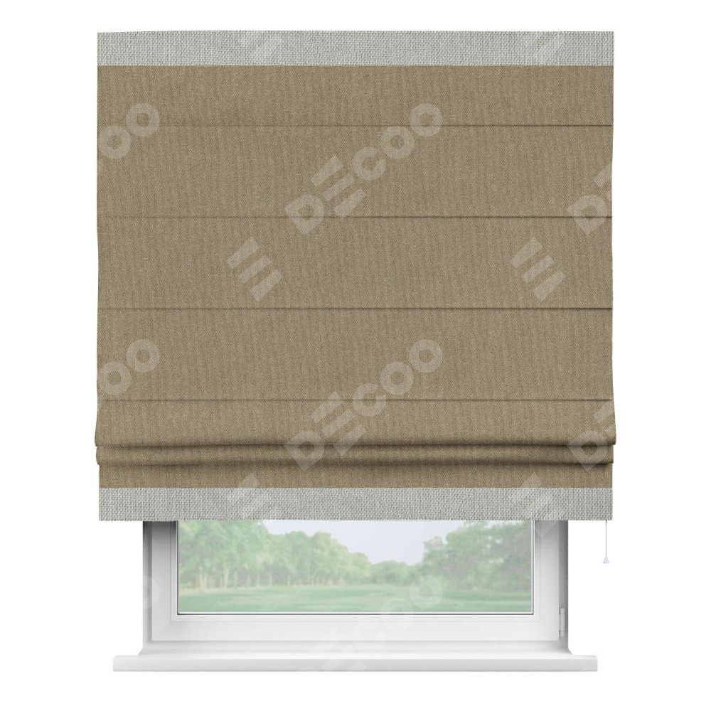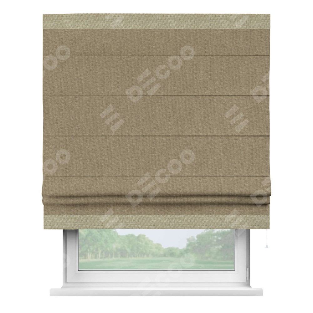 Римская штора «Кортин» для проема, лён димаут тёмно-бежевый с кантом Горизонт
