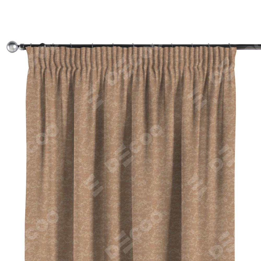 Комплект прямых штор, от производителя «Cortin», пошиты из ткани софт мрамор бронзовый, артикул ткани 93576. С изнаночной стороны в верхней части штор пристрачивается шторная лента с декоративными складками «Карандаш». Для создания элегантных складок прямые шторы шьются по стандарту с коэффициентом 1:2 (на 100 см. ширины проёма 200 см. ширины ткани).