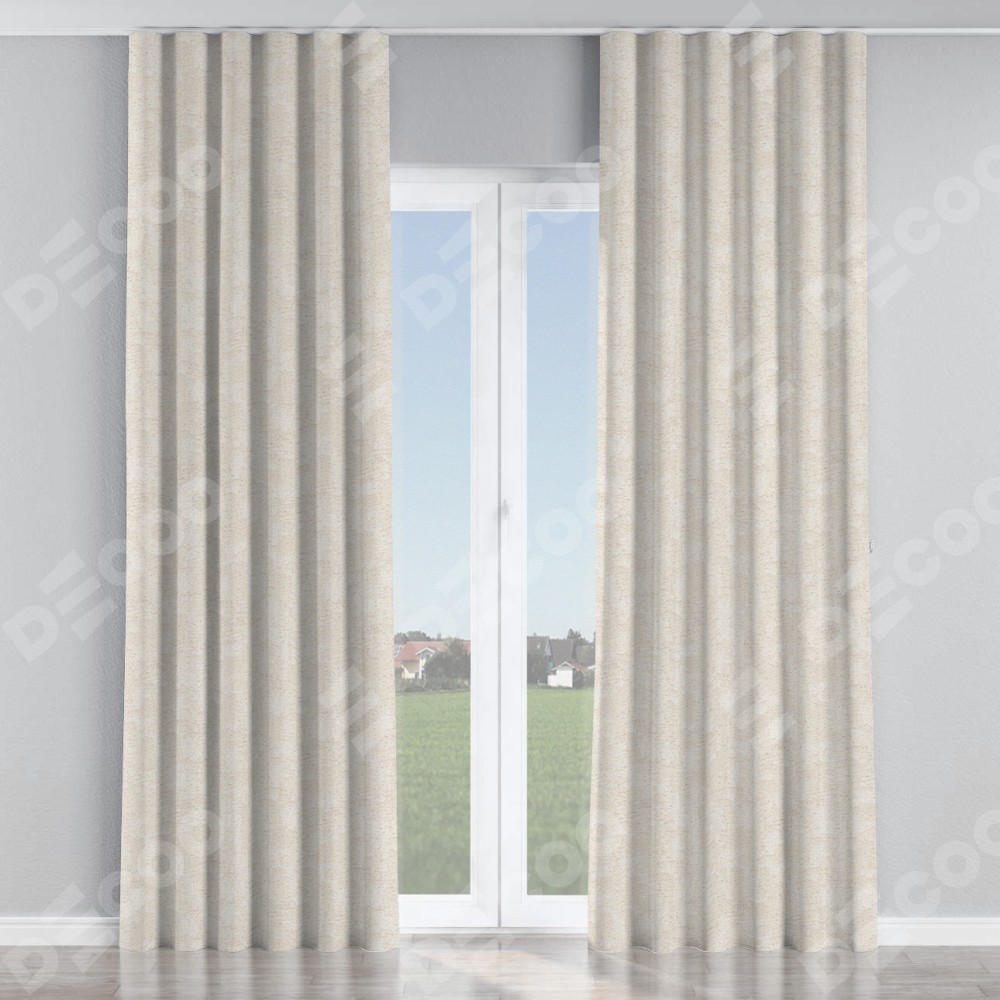 Комплект прямых штор, от производителя «Cortin», пошиты из ткани софт мрамор кремовый, артикул ткани 93574. С изнаночной стороны в верхней части штор пристрачивается шторная лента с декоративными складками «Волна». Для создания элегантных складок прямые шторы шьются по стандарту с коэффициентом 1:2 (на 100 см. ширины проёма 200 см. ширины ткани).