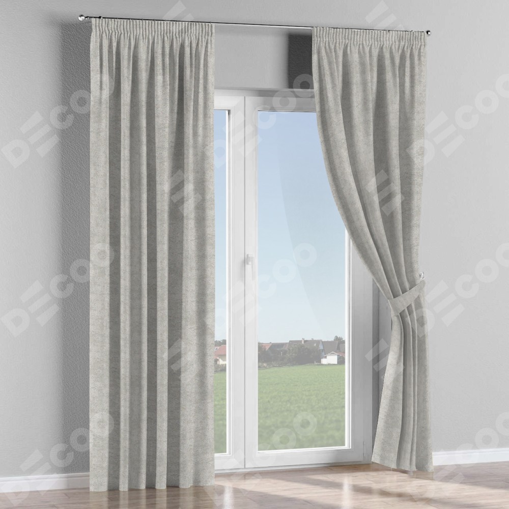 Комплект прямых штор, от производителя «Cortin», пошиты из ткани софт мрамор светло-серый, артикул ткани 93582. С изнаночной стороны в верхней части штор пристрачивается шторная лента с декоративными складками «Карандаш». Для создания элегантных складок прямые шторы шьются по стандарту с коэффициентом 1:2 (на 100 см. ширины проёма 200 см. ширины ткани).