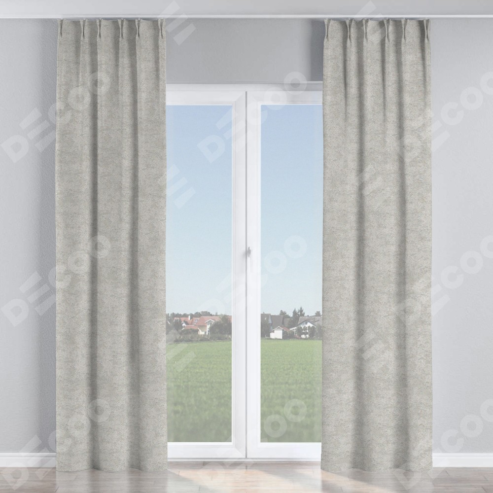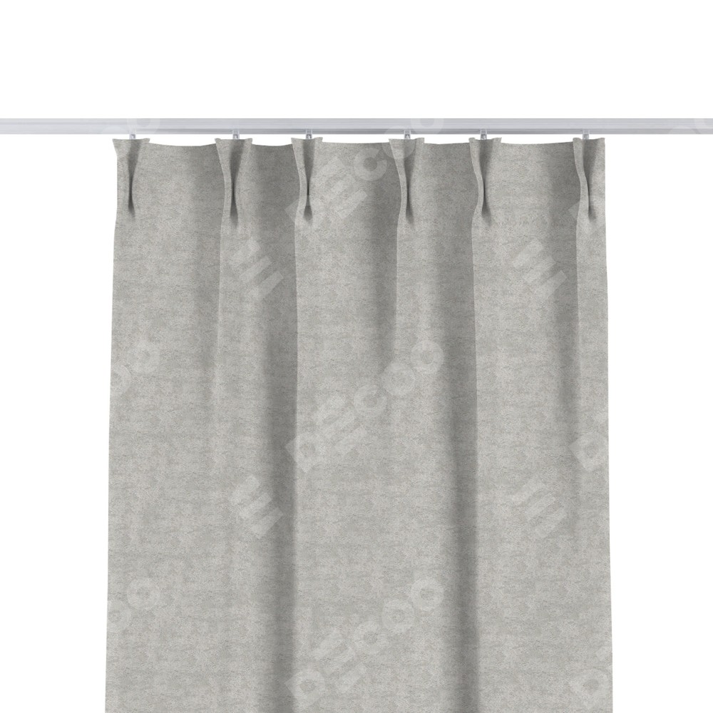 Комплект прямых штор, от производителя «Cortin», пошиты из ткани софт мрамор светло-серый, артикул ткани 93582. С изнаночной стороны в верхней части штор пристрачивается шторная лента с декоративными складками «Кустик». Для создания элегантных складок прямые шторы шьются по стандарту с коэффициентом 1:2 (на 100 см. ширины проёма 200 см. ширины ткани).