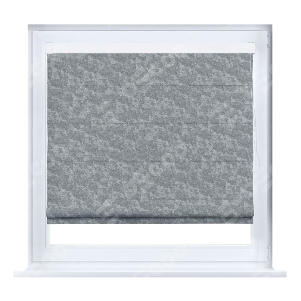 Римская штора производителя «Cortin», устанавливается на створку окна, пошита из ткани софт мрамор серый, артикул 93583. Штора шьётся по индивидуальным размерам, для данного типа римской шторы возможная ширина от 35 до 150 см., высота до 250 см.