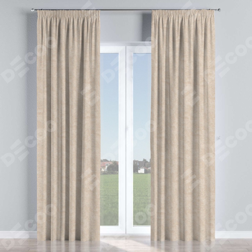 Комплект прямых штор, от производителя «Cortin», пошиты из ткани софт мрамор шампань, артикул ткани 93575. С изнаночной стороны в верхней части штор пристрачивается шторная лента с декоративными складками «Карандаш». Для создания элегантных складок прямые шторы шьются по стандарту с коэффициентом 1:2 (на 100 см. ширины проёма 200 см. ширины ткани).