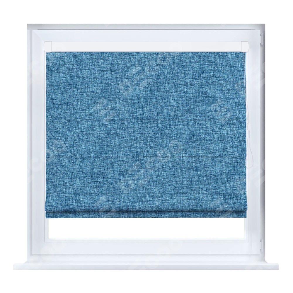 Римская штора производителя «Cortin», устанавливается на створку окна, пошита из ткани рогожка димаут джинс, артикул 91026. Штора шьётся по индивидуальным размерам, для данного типа римской шторы возможная ширина от 35 до 150 см., высота до 250 см.