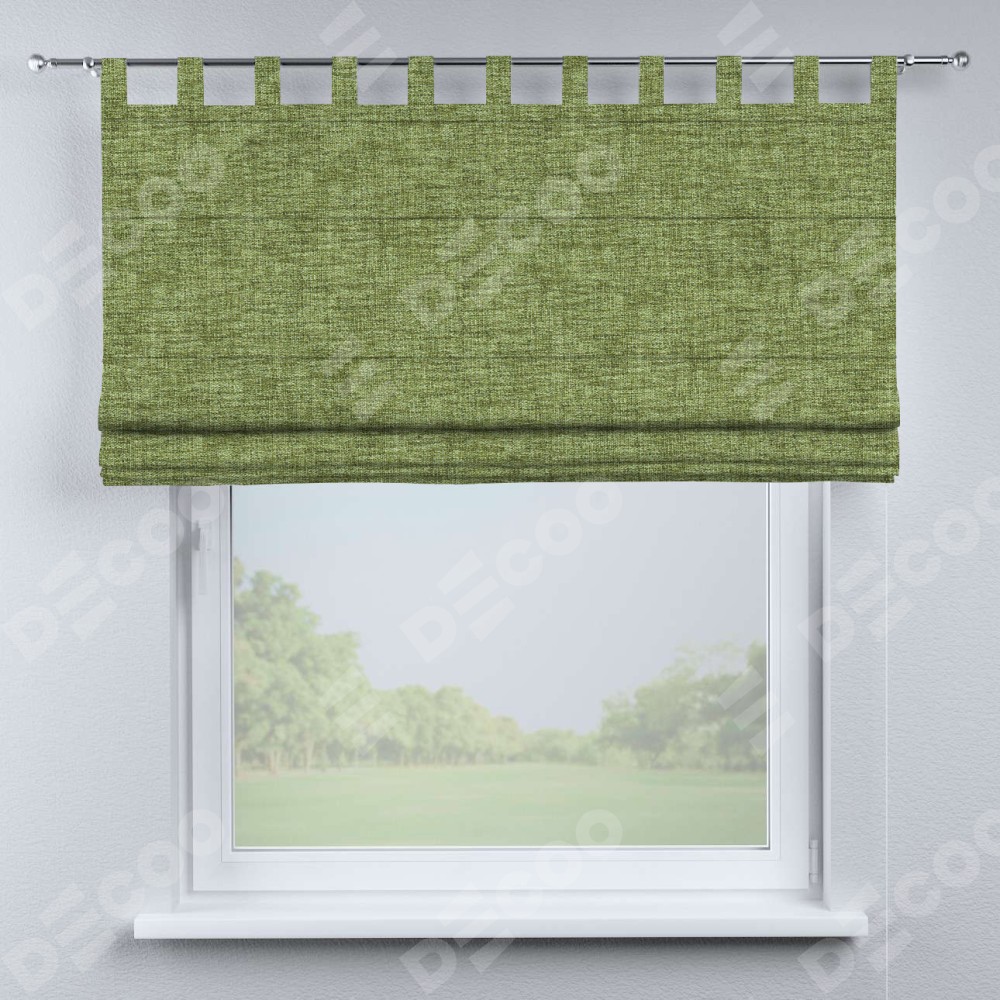 Римская штора производителя «Cortin», используется для проёма, пошита из ткани рогожка димаут травяной, артикул ткани 91021. Данная модель пошита на петлях, комплектуется на выбор круглым карнизом и подходит для монтажа на стену. Римская штора на петлях имеет простую систему регулировки высоты, отличительным преимуществом данной модели является простой способ монтажа. Достаточно повесить ее на трубу и штора готова!