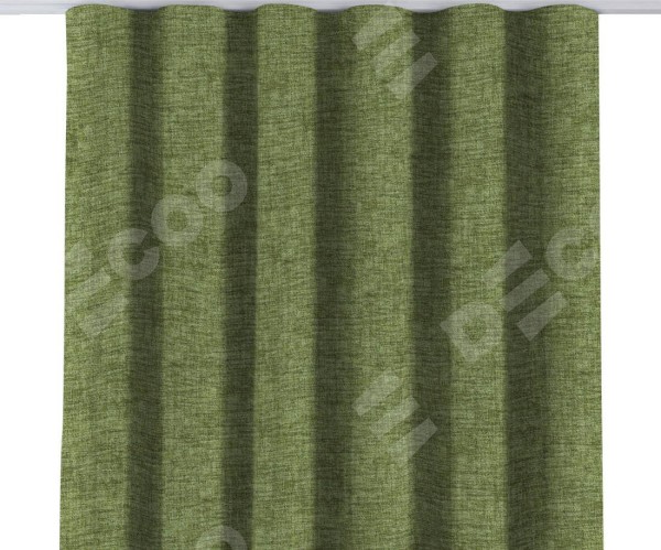 Комплект прямых штор, от производителя «Cortin», пошиты из ткани рогожка димаут травяной, артикул ткани 91021. С изнаночной стороны в верхней части штор пристрачивается шторная лента с декоративными складками «Волна». Для создания элегантных складок прямые шторы шьются по стандарту с коэффициентом 1:2 (на 100 см. ширины проёма 200 см. ширины ткани).