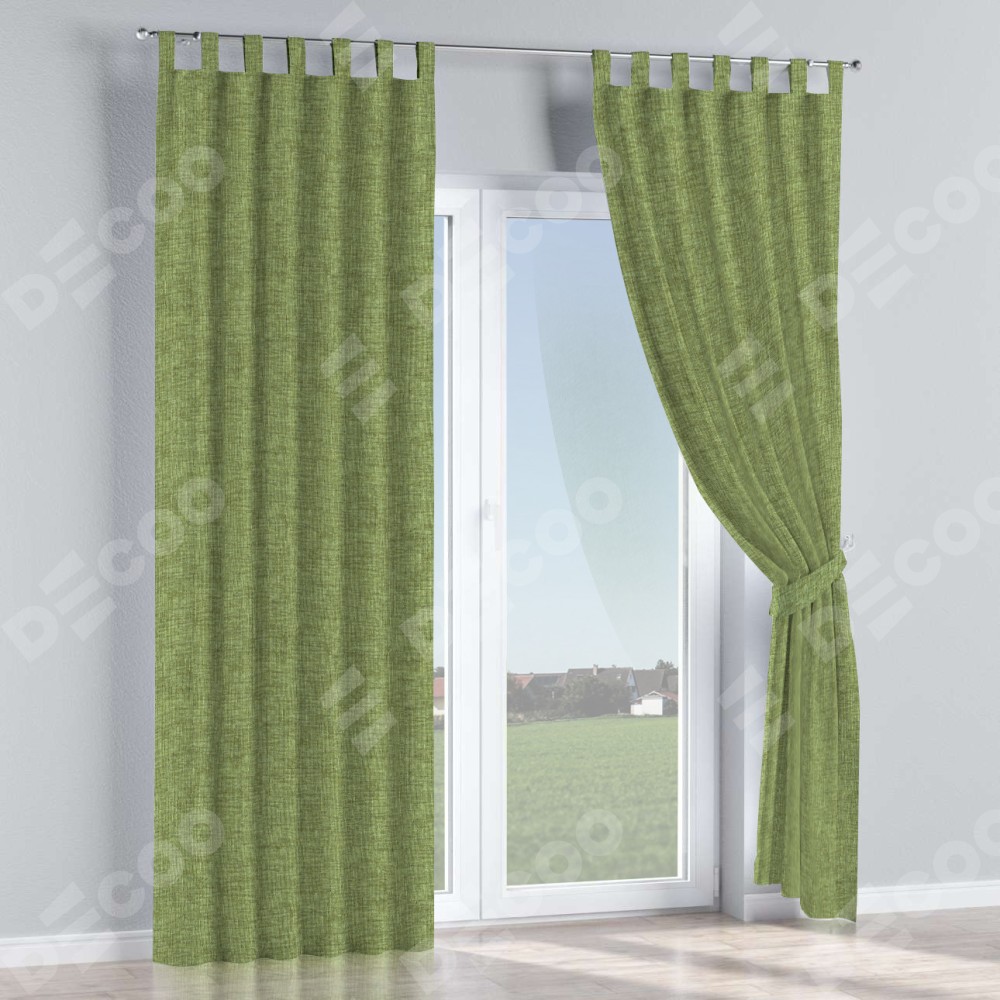 Комплект прямых штор, от производителя «Cortin», пошиты из ткани рогожка димаут травяной, артикул ткани 91021. Данная модель пошита на петлях, комплектуется на выбор круглым карнизом и подходит для монтажа на стену или потолок. Прямые шторы на петлях шьются по стандарту с коэффициентом 1/2 (на 100 см. ширины проёма 200 см. ширины ткани), отличительным преимуществом данной модели является простой способ монтажа. Достаточно повесить ее на трубу и штора готова!