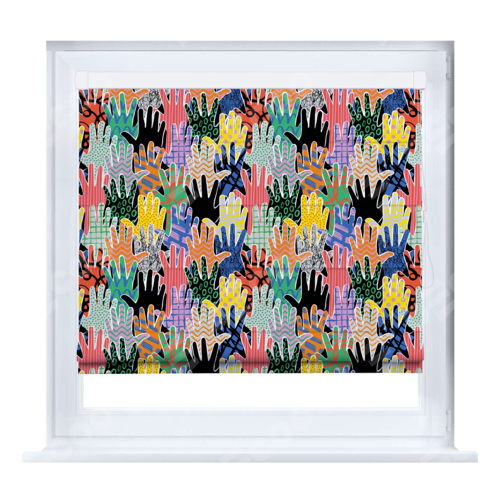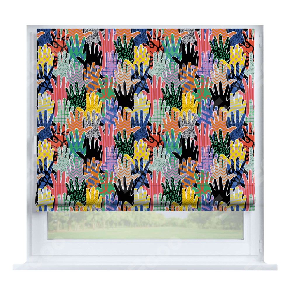 Римская штора производителя «Cortin», устанавливается на створку окна, пошита из ткани блэкаут с нанесением сублимационной печати «Коллаж поп-арт». Штора шьётся по индивидуальным размерам, для данного типа римской шторы возможная ширина от 35 до 150 см., высота до 250 см.