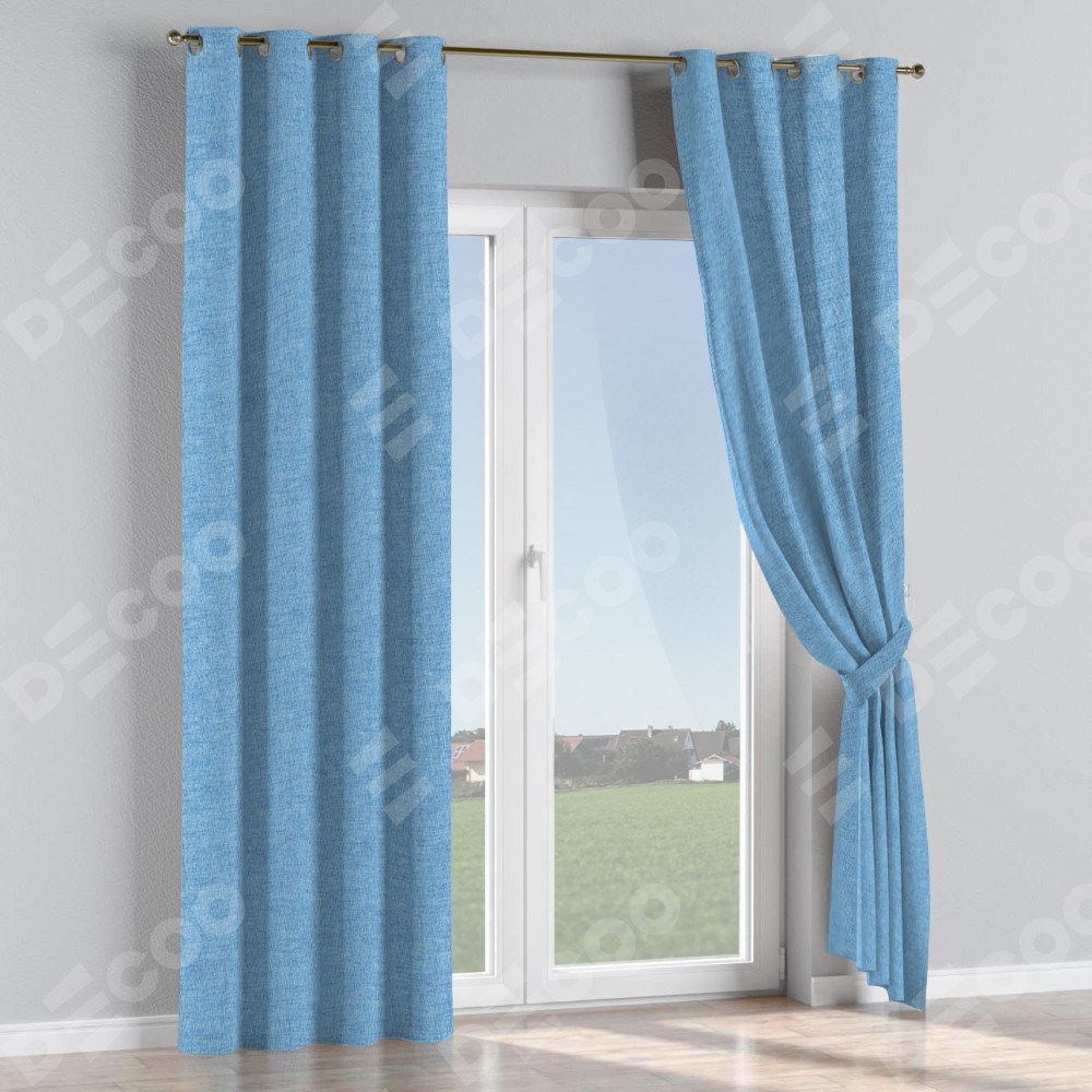 Комплект прямых штор, от производителя «Cortin», пошиты из ткани рогожка димаут голубой, артикул ткани 91025. Данная модель пошита на люверсах, комплектуется на выбор круглым карнизом и подходит для монтажа на стену или потолок. Прямые шторы на люверсах шьются по стандарту с коэффициентом 1/2 (на 100 см. ширины проёма 200 см. ширины ткани), отличительным преимуществом данной модели является простой способ монтажа. Достаточно повесить ее на трубу и штора готова!