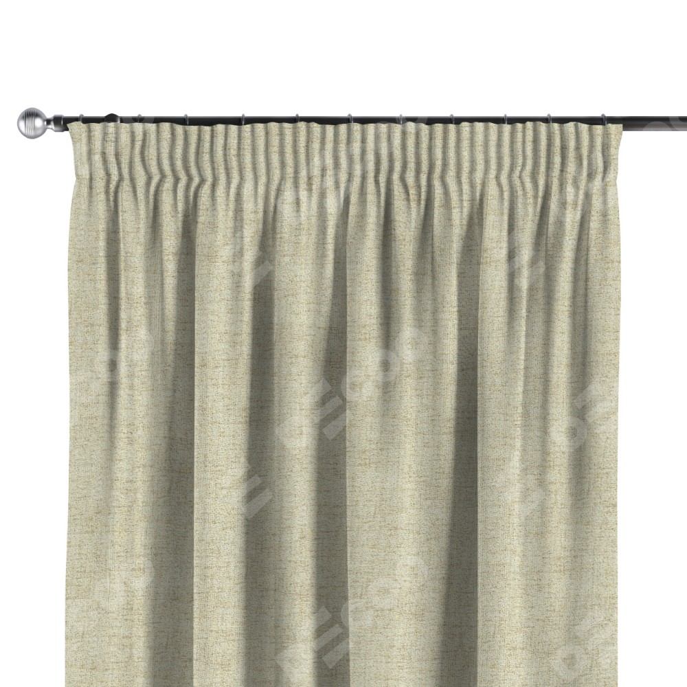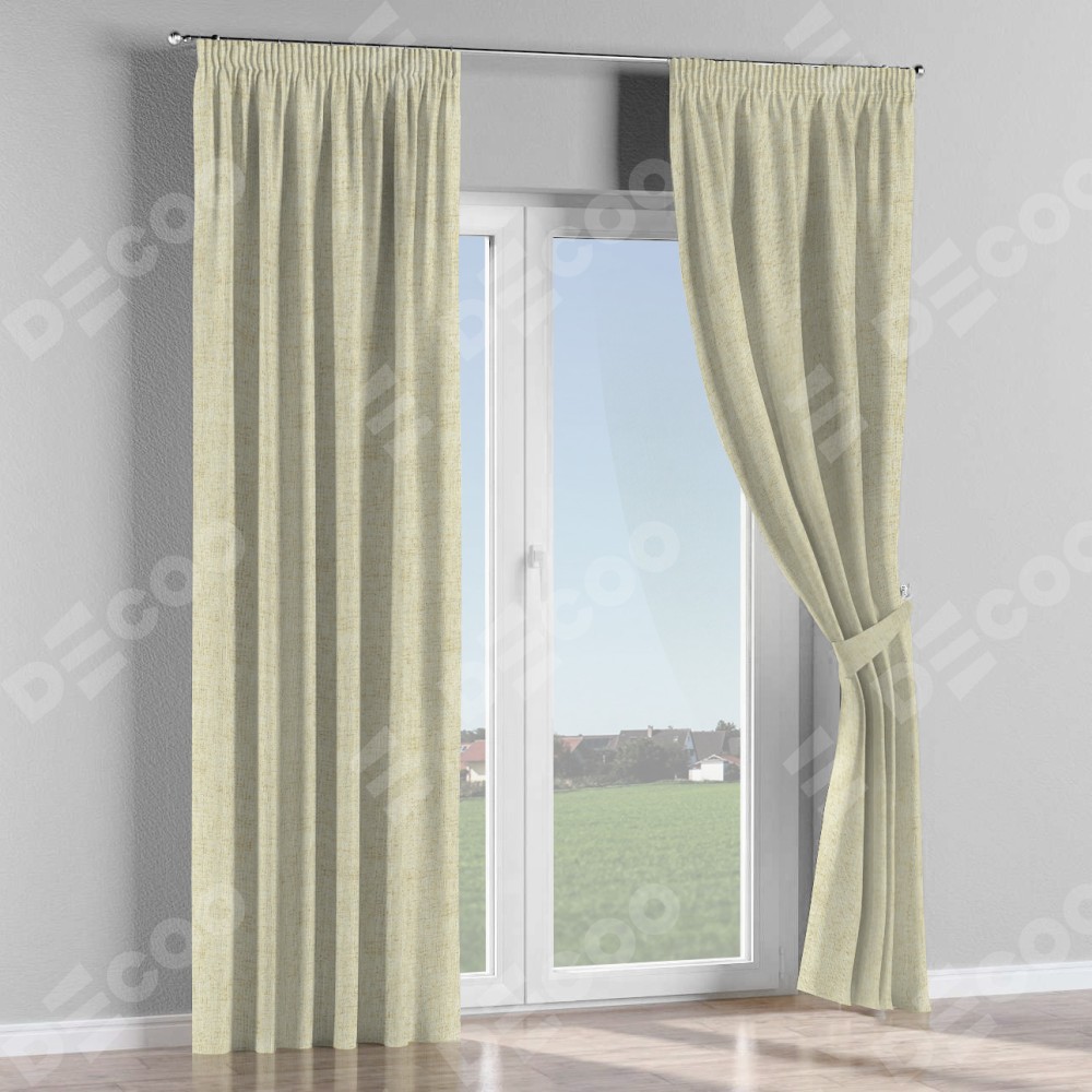 Комплект прямых штор, от производителя «Cortin», пошиты из ткани рогожка димаут золотой песок, артикул ткани 91015. С изнаночной стороны в верхней части штор пристрачивается шторная лента с декоративными складками «Карандаш». Для создания элегантных складок прямые шторы шьются по стандарту с коэффициентом 1:2 (на 100 см. ширины проёма 200 см. ширины ткани).