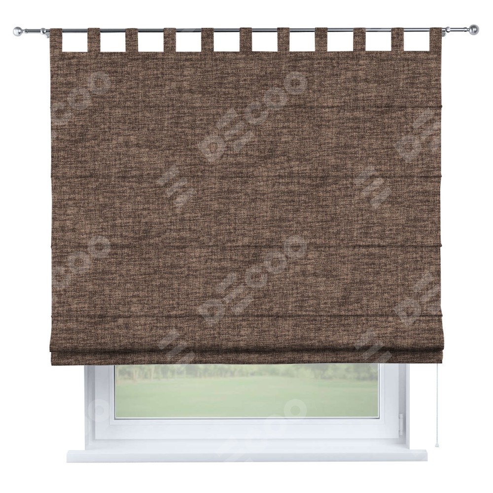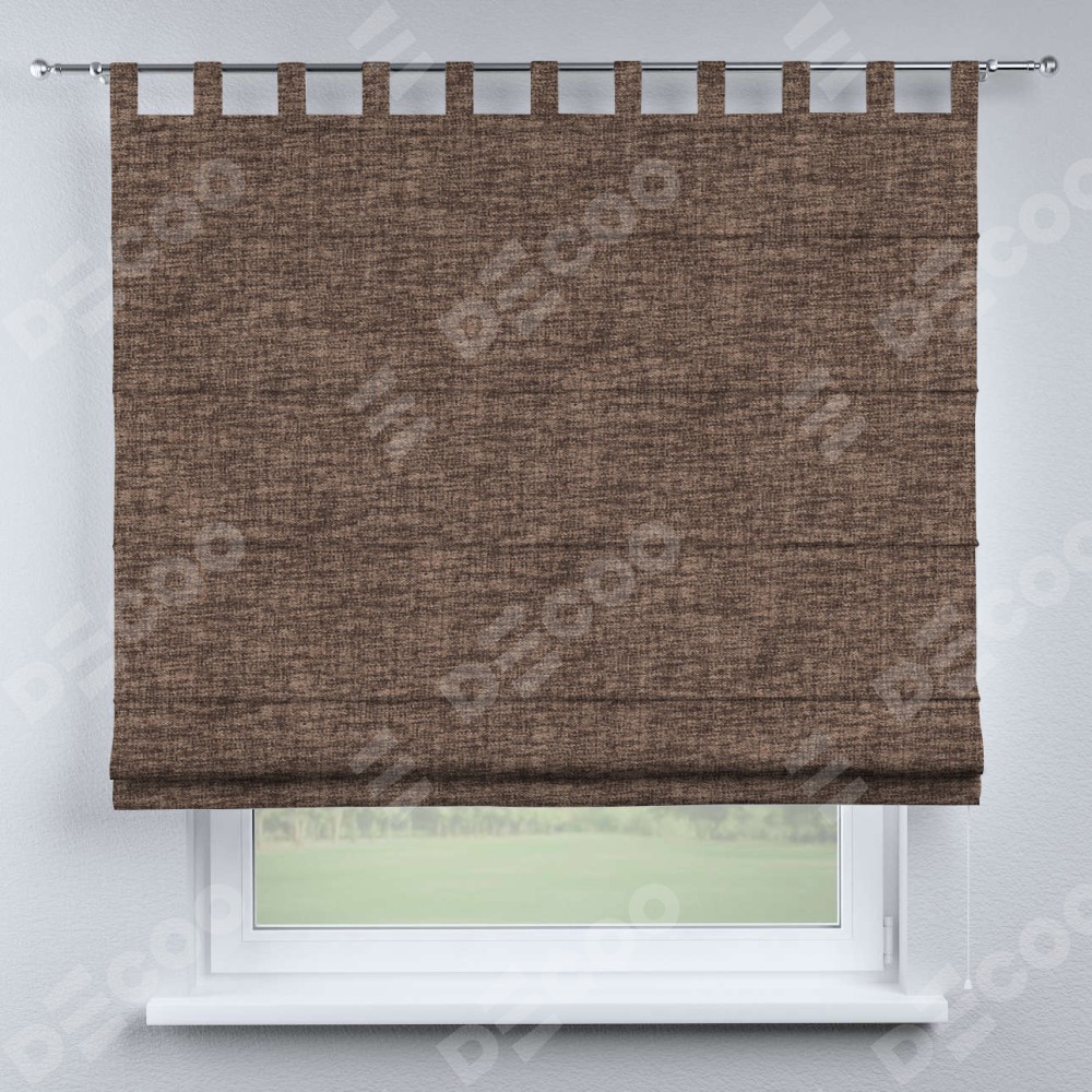 Римская штора «Кортин», рогожка димаут коричневый, на петлях