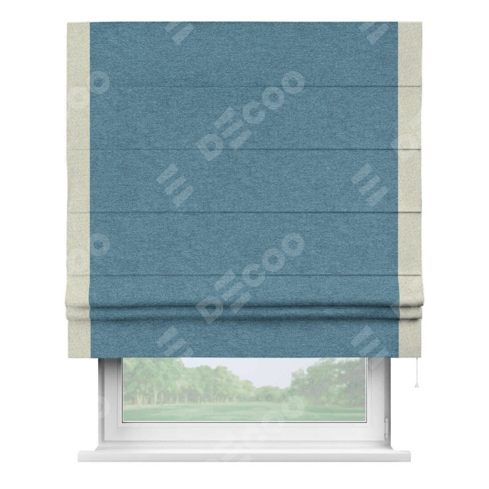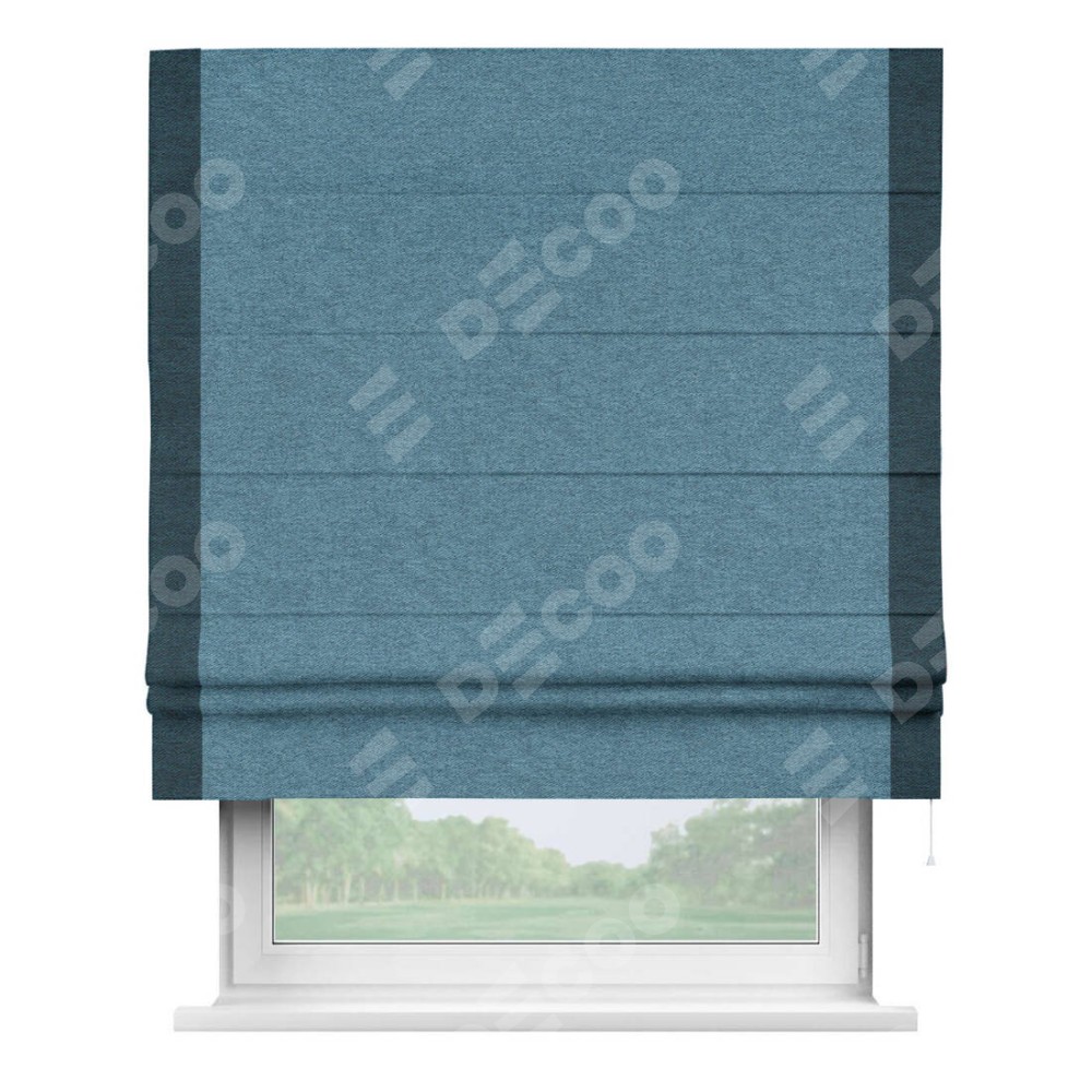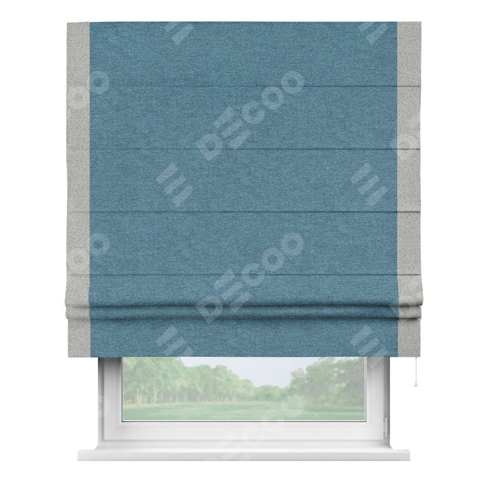Римская штора «Кортин» с кантом Стрим Дуо, для проема, ткань твид блэкаут, светло-синий