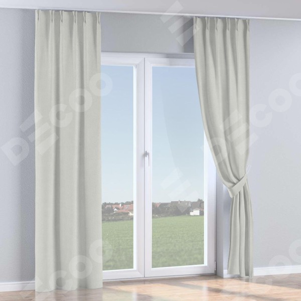 Комплект прямых штор, от производителя «Cortin», пошиты из ткани блэкаут однотонный милк, артикул ткани 23. С изнаночной стороны в верхней части штор пристрачивается шторная лента с декоративными складками «Кустик». Для создания элегантных складок прямые шторы шьются по стандарту с коэффициентом 1:2 (на 100 см. ширины проёма 200 см. ширины ткани).