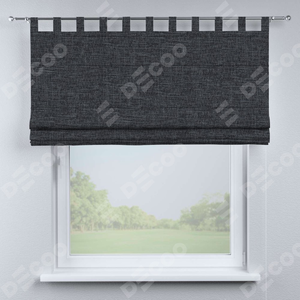 Римская штора производителя «Cortin», используется для проёма, пошита из ткани рогожка димаут графит, артикул ткани 90950. Данная модель пошита на петлях, комплектуется на выбор круглым карнизом и подходит для монтажа на стену. Римская штора на петлях имеет простую систему регулировки высоты, отличительным преимуществом данной модели является простой способ монтажа. Достаточно повесить ее на трубу и штора готова!