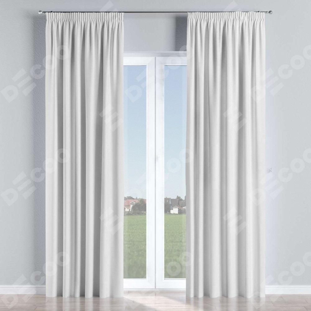 Комплект прямых штор, от производителя «Cortin», пошиты из ткани лён белоснежный, артикул ткани 95632. С изнаночной стороны в верхней части штор пристрачивается шторная лента с декоративными складками «Карандаш». Для создания элегантных складок прямые шторы шьются по стандарту с коэффициентом 1:2 (на 100 см. ширины проёма 200 см. ширины ткани).