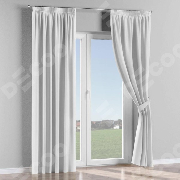 Комплект прямых штор, от производителя «Cortin», пошиты из ткани лён белоснежный, артикул ткани 95632. С изнаночной стороны в верхней части штор пристрачивается шторная лента с декоративными складками «Карандаш». Для создания элегантных складок прямые шторы шьются по стандарту с коэффициентом 1:2 (на 100 см. ширины проёма 200 см. ширины ткани).