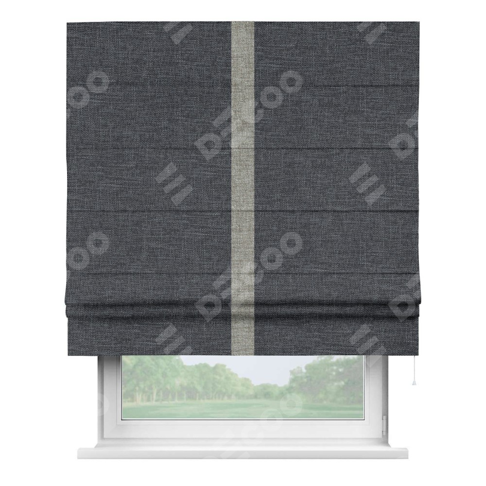 Римская штора «Кортин» для проёма, рогожка димаут графит, с кантом Хайвэй