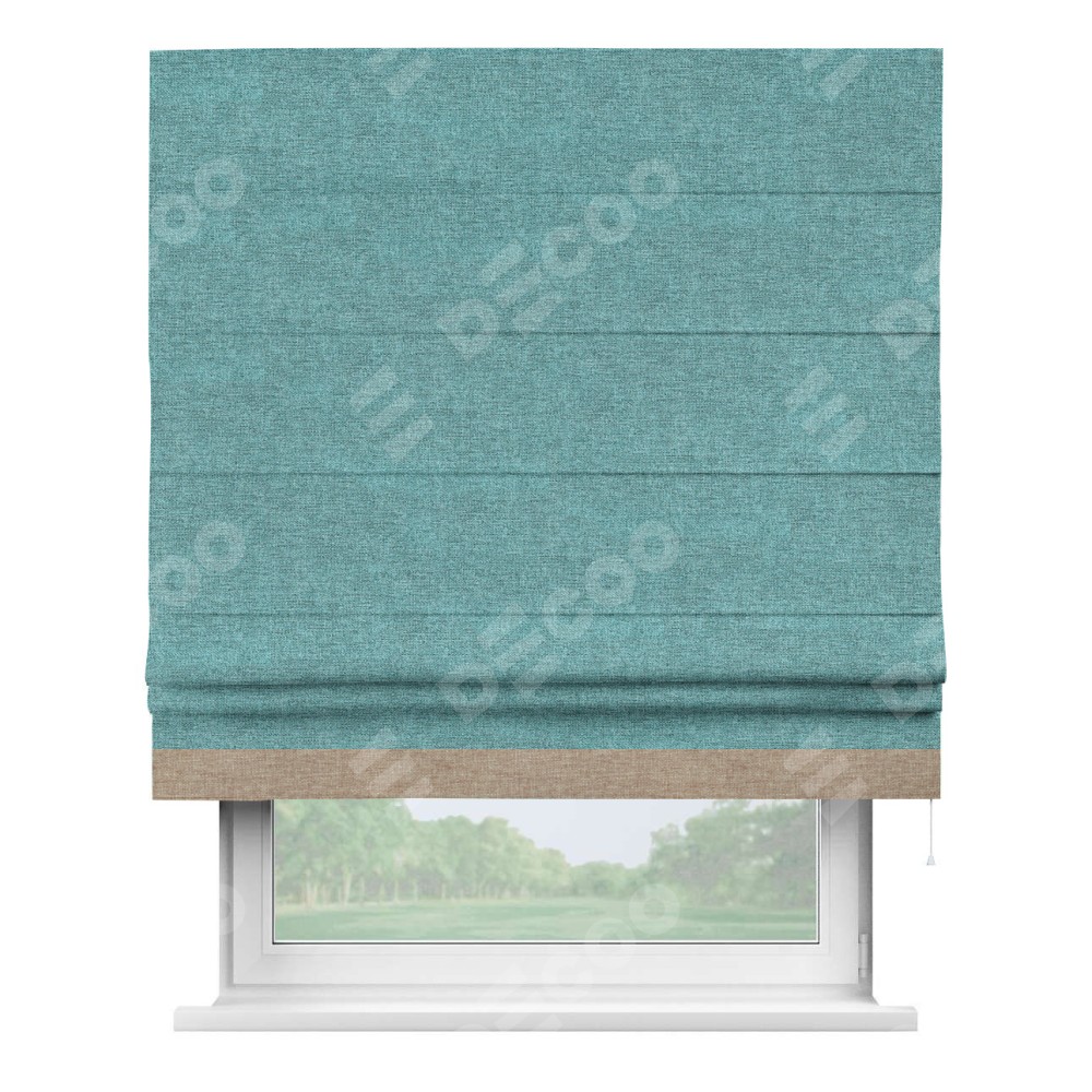 Римская штора «Кортин» с кантом Джестер, для проема, ткань лён кашемир бирюзовый