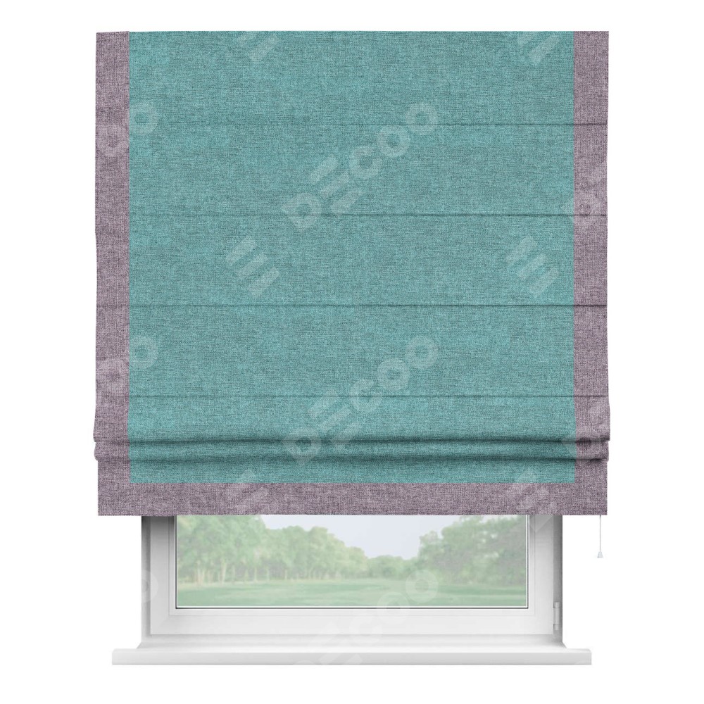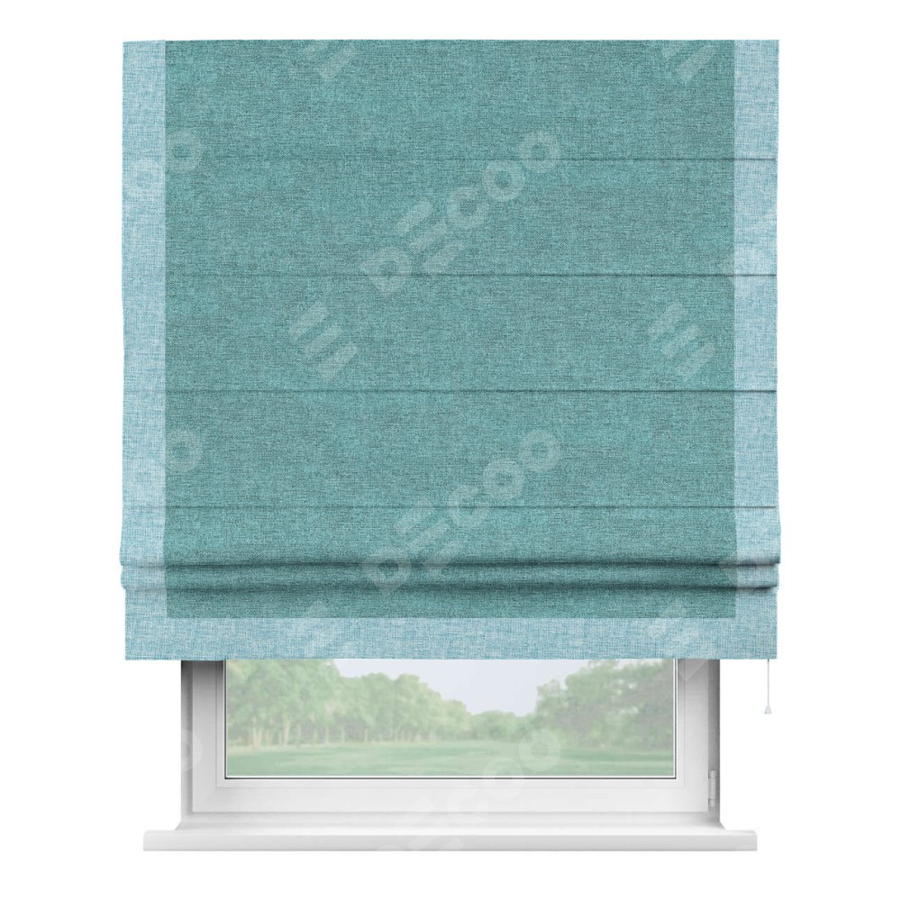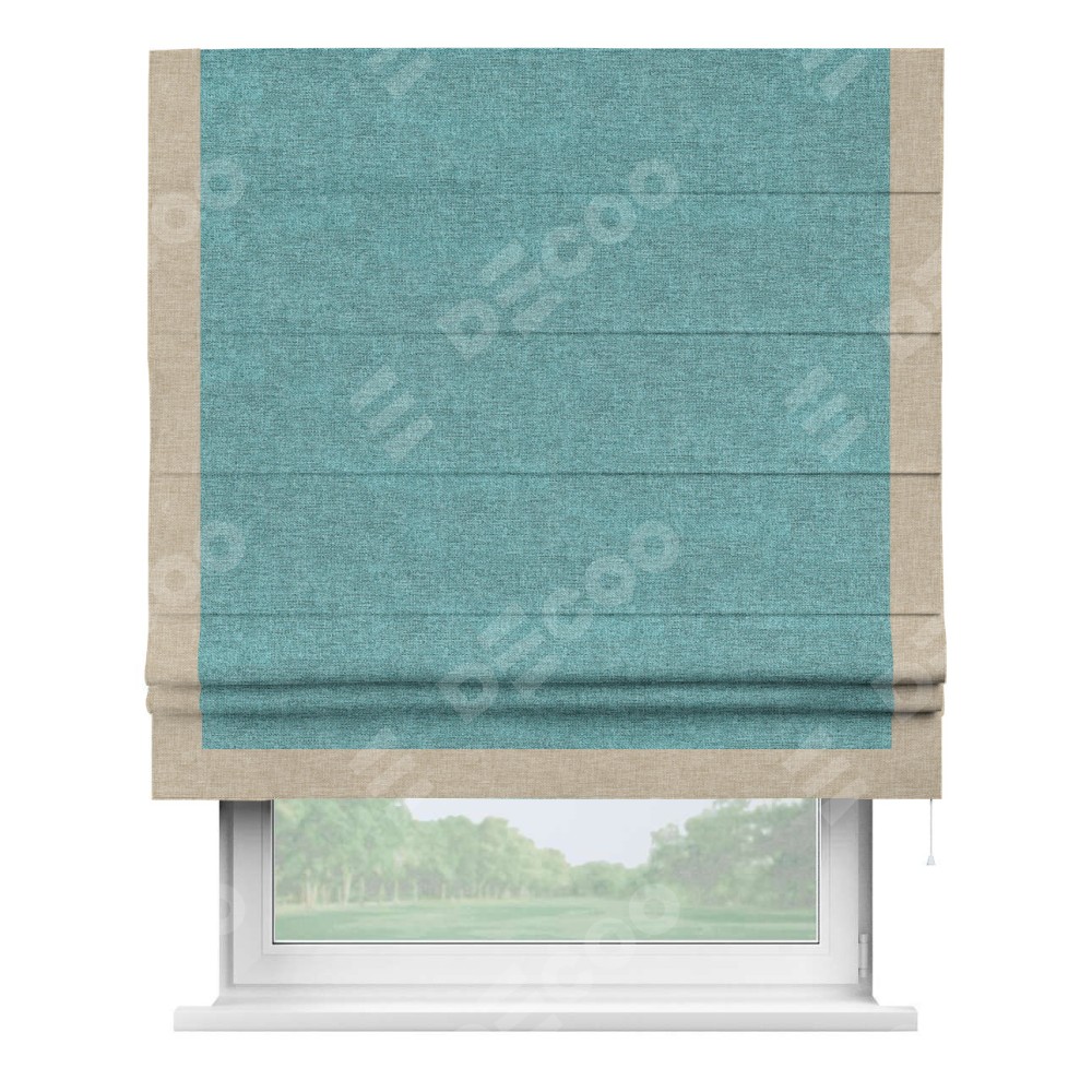 Римская штора «Кортин» с кантом Виктория, для проема, ткань лён кашемир бирюзовый