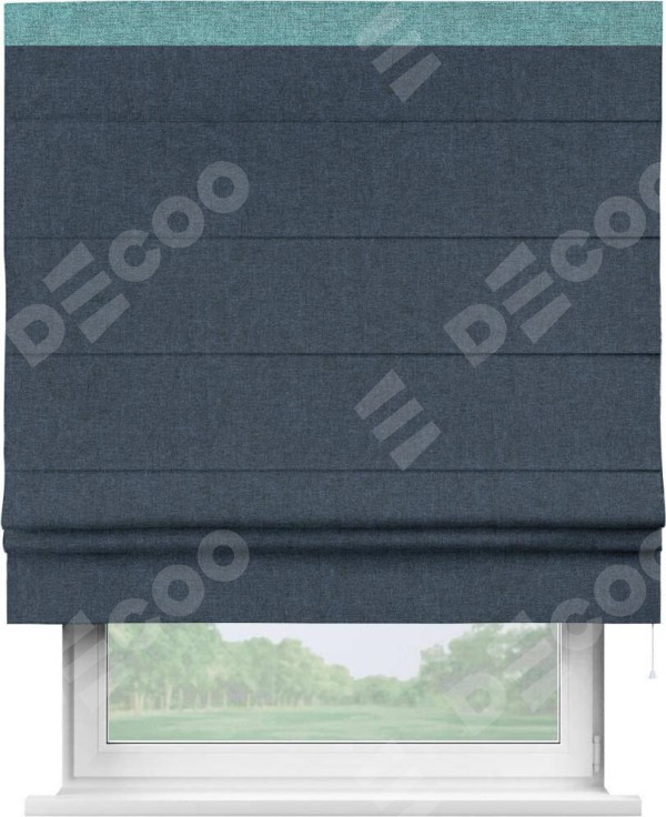 Римская штора «Кортин» для проёма, лён кашемир синий, с кантом Кинг