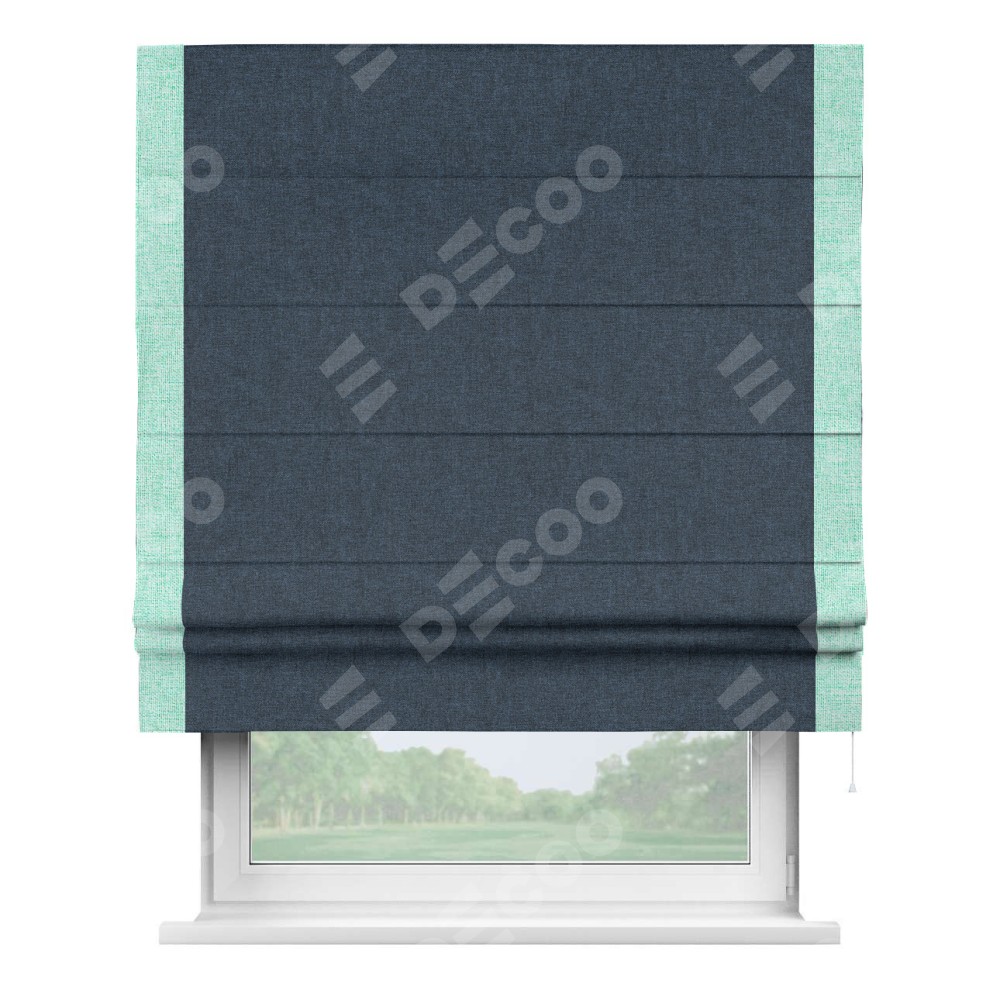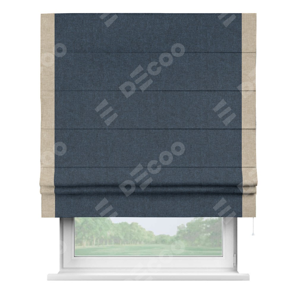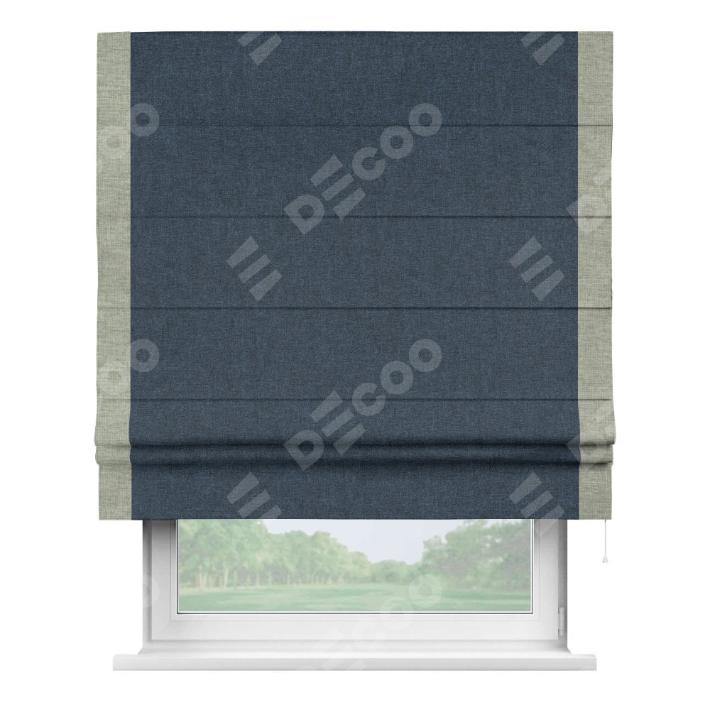 Римская штора «Кортин» для проёма, лён кашемир синий, с кантом Стрим Дуо