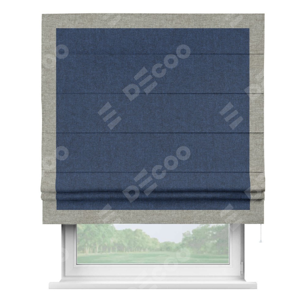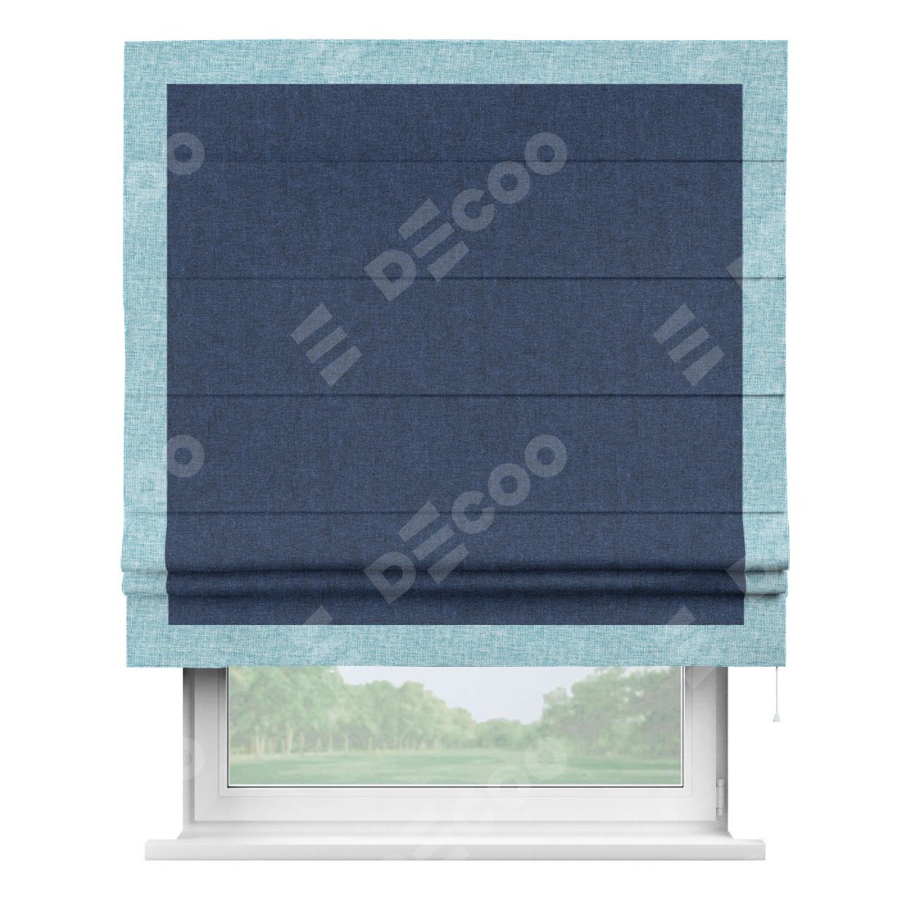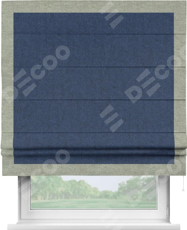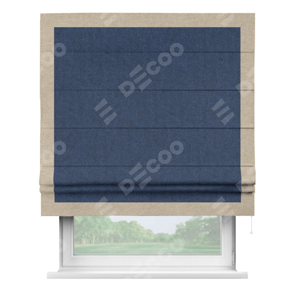 Римская штора «Кортин» для проёма, лён кашемир тёмно-синий, с кантом Чесс