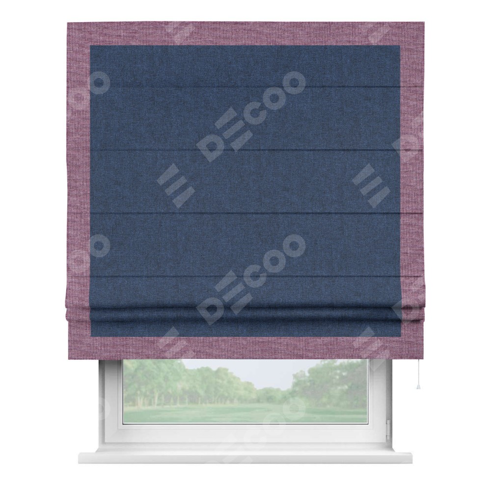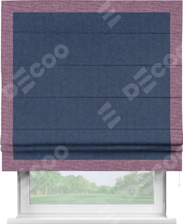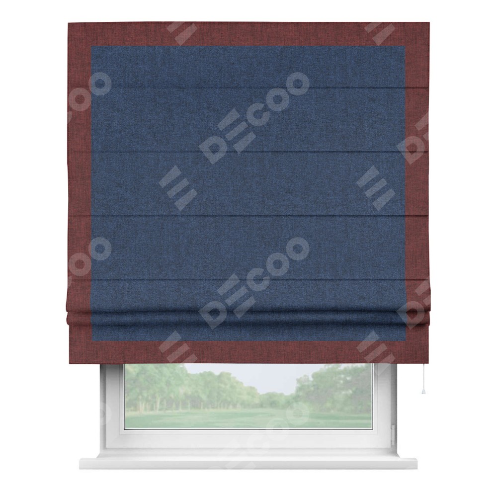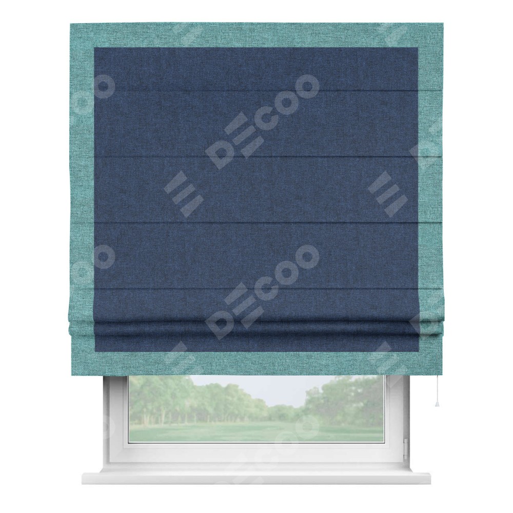 Римская штора «Кортин» для проёма, лён кашемир тёмно-синий, с кантом Чесс