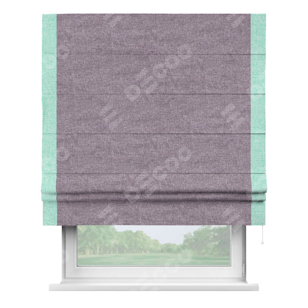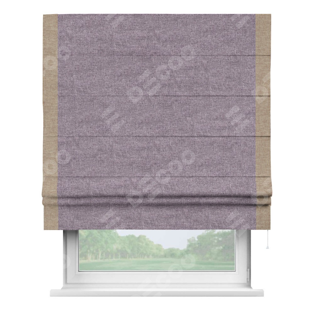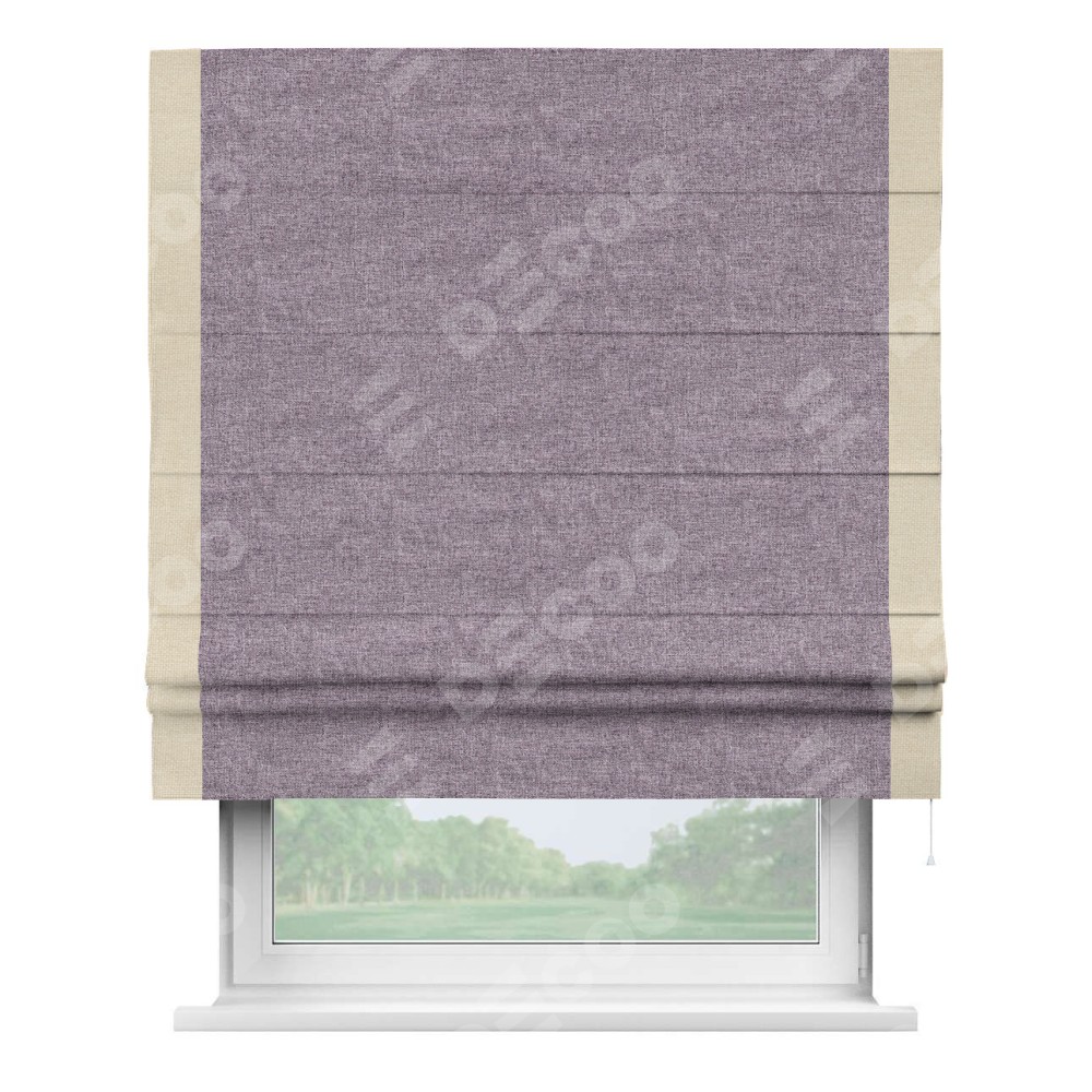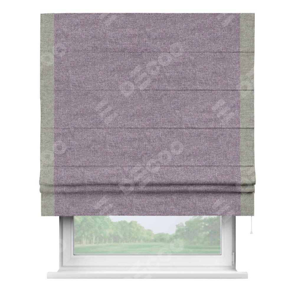 Римская штора «Кортин» для проёма, лён кашемир фиолетовый, с кантом Стрим Дуо