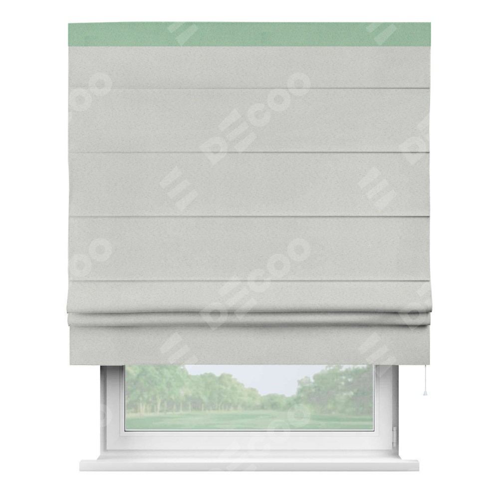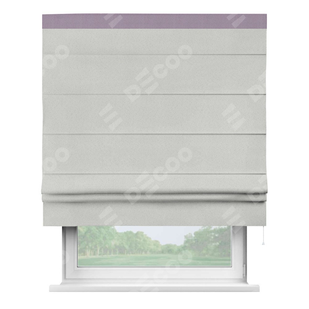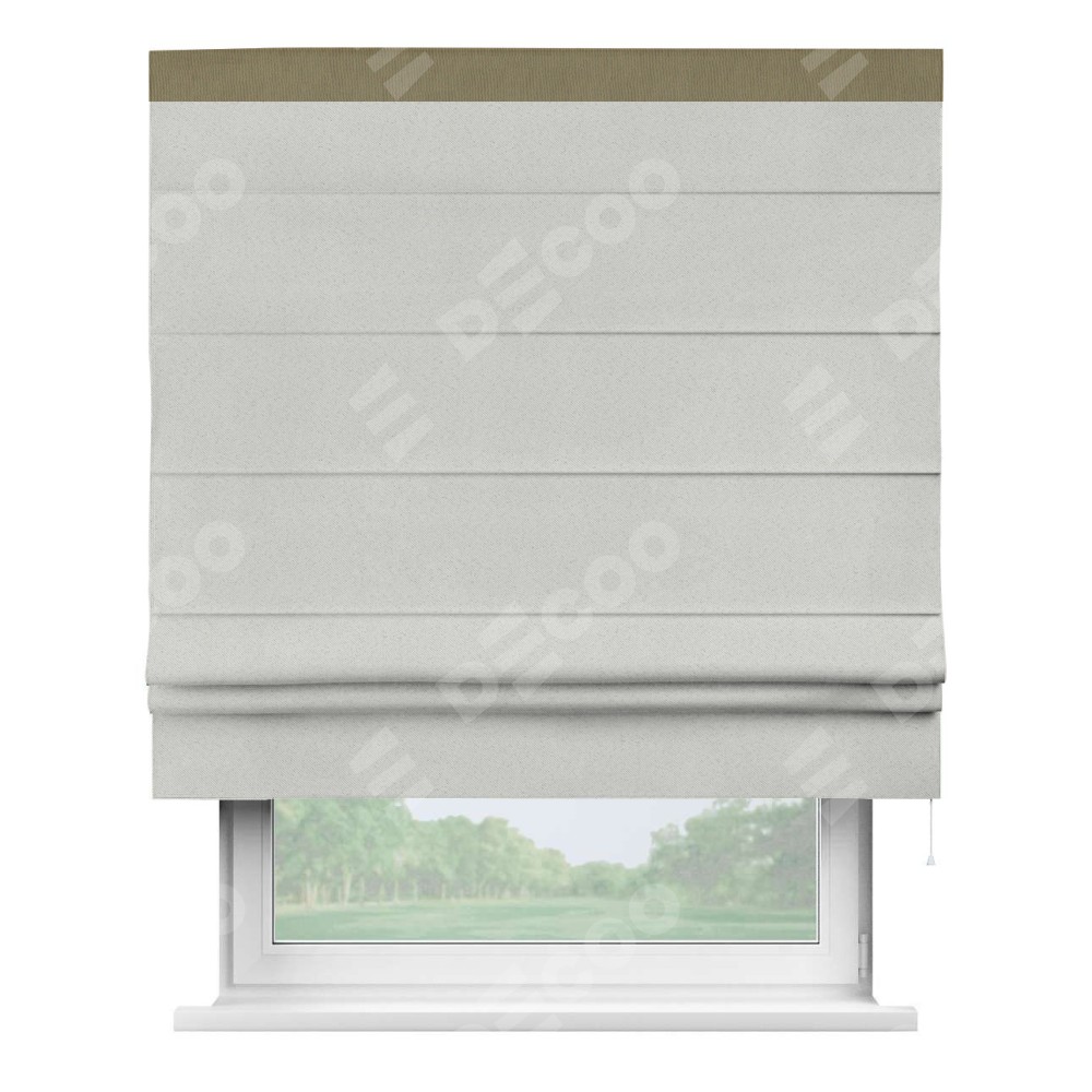 Римская штора пошита из ткани однотонный блэкаут милк, артикул: 23, с отделкой кантом «Кинг» отличается своей необычной особенностью: кант располагается исключительно сверху шторы. Такой дизайн делает акцент на верхней части окна, визуально поднимая потолок и придавая интерьеру более возвышенный и изысканный вид. Отделка кантом на верхней кромке не только украшает штору, но и может служить дополнительной защитой от износа в месте наибольшего контакта с механизмом управления шторой.