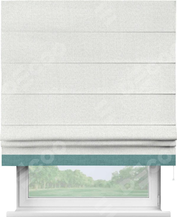 Римская штора пошита из ткани лён шампань, артикул: 91399, с отделкой кантом «Джестер» выделяется своей уникальной особенностью — кантом, расположенным только снизу шторы. Этот дизайн добавляет оригинальности и игривости оконному оформлению, делая акцент на нижней части шторы и создавая интересный визуальный эффект. Отделка кантом на нижнем крае не только служит эстетической функции, но и способствует увеличению прочности и износостойкости ткани в этом месте.