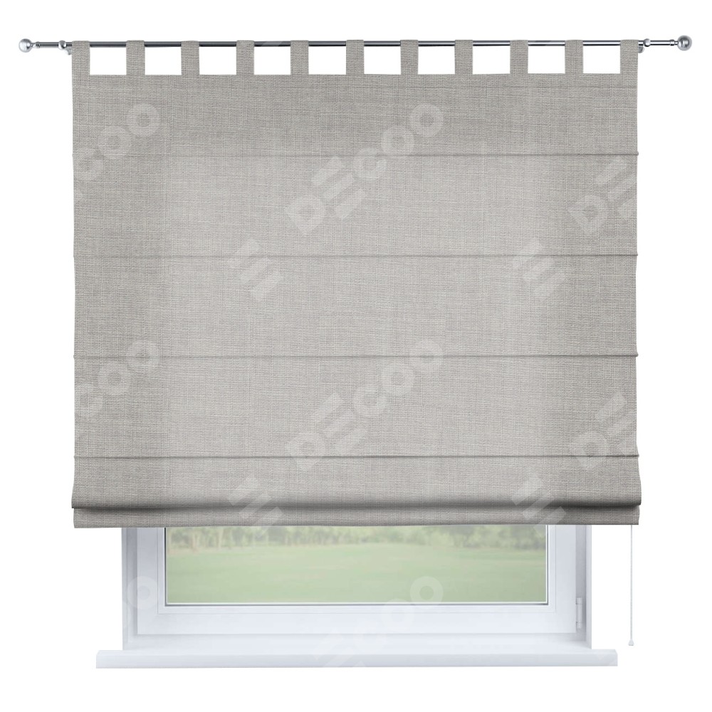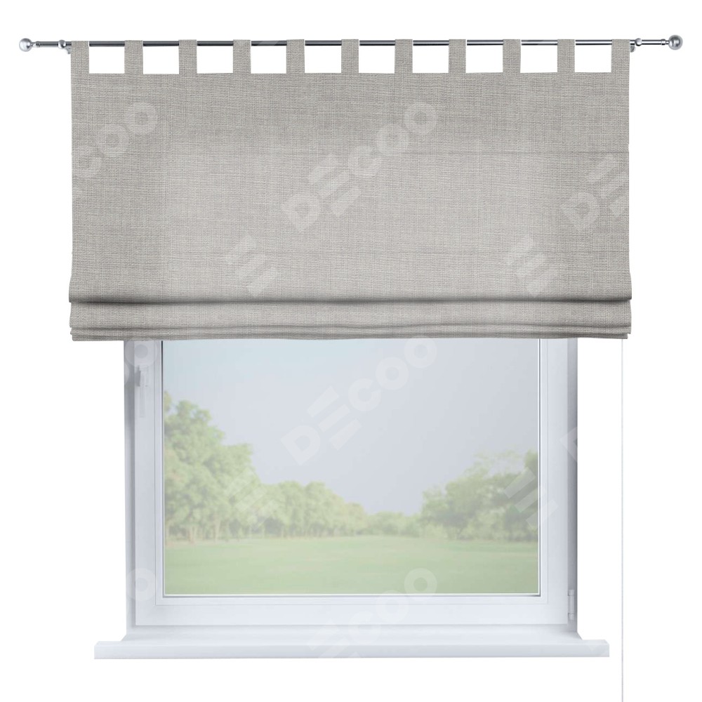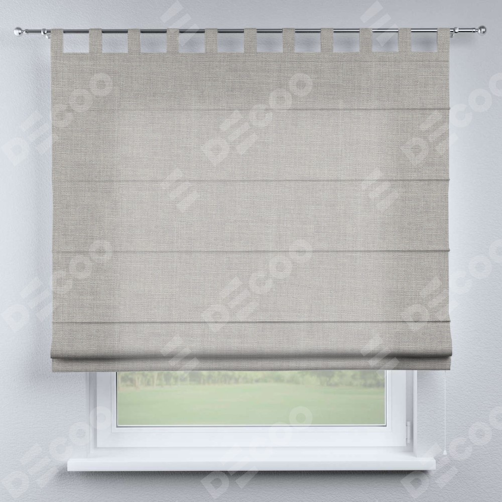 Римская штора производителя «Cortin», используется для проёма, пошита из ткани лён серый, артикул ткани 91410. Данная модель пошита на петлях, комплектуется на выбор круглым карнизом и подходит для монтажа на стену. Римская штора на петлях имеет простую систему регулировки высоты, отличительным преимуществом данной модели является простой способ монтажа. Достаточно повесить ее на трубу и штора готова!