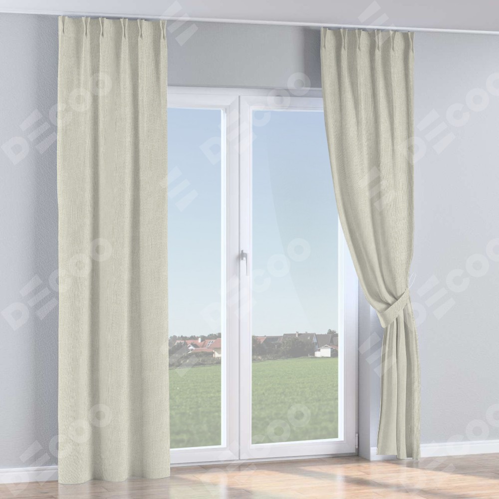 Комплект прямых штор, от производителя «Cortin», пошиты из ткани лён димаут светло-бежевый, артикул ткани 140649. С изнаночной стороны в верхней части штор пристрачивается шторная лента с декоративными складками «Кустик». Для создания элегантных складок рекомендуемый коэффициент 1:2 (на 100 см. ширины проёма 200 см. ширины ткани). Важно! Ширина штор указана без учёта коэффициента сборки!