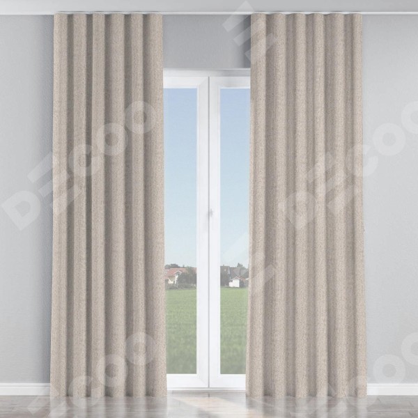 Комплект прямых штор, от производителя «Cortin», пошиты из ткани лён димаут бежевый, артикул ткани 01. С изнаночной стороны в верхней части штор пристрачивается шторная лента с декоративными складками «Волна». Для создания элегантных складок рекомендуемый коэффициент 1:2 (на 100 см. ширины проёма 200 см. ширины ткани). Важно! Ширина штор указана без учёта коэффициента сборки!