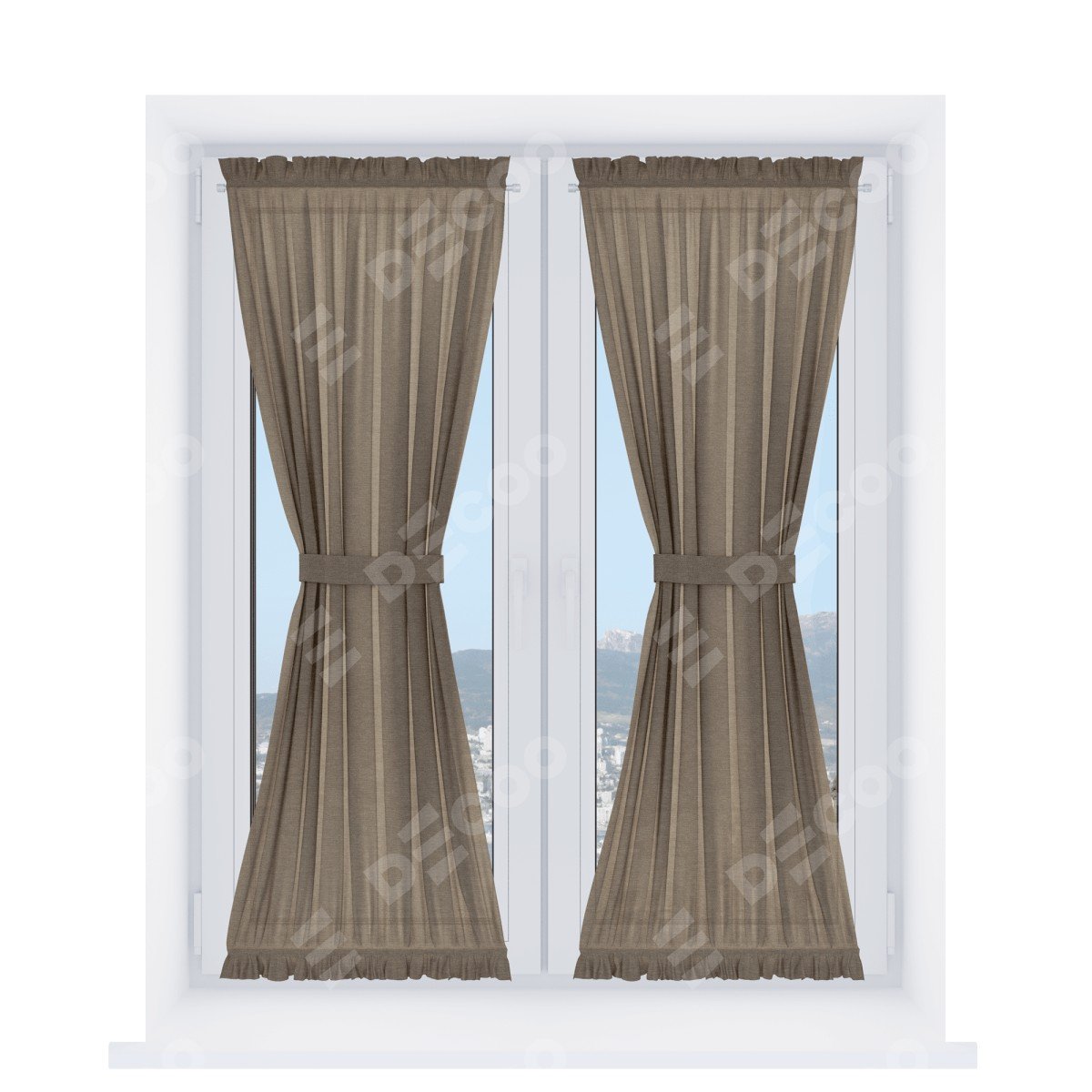 Штора «Песочные часы» производителя «Cortin», используется для створок окон и дверей, пошита из ткани лён светло-коричневый, артикул ткани 53434.