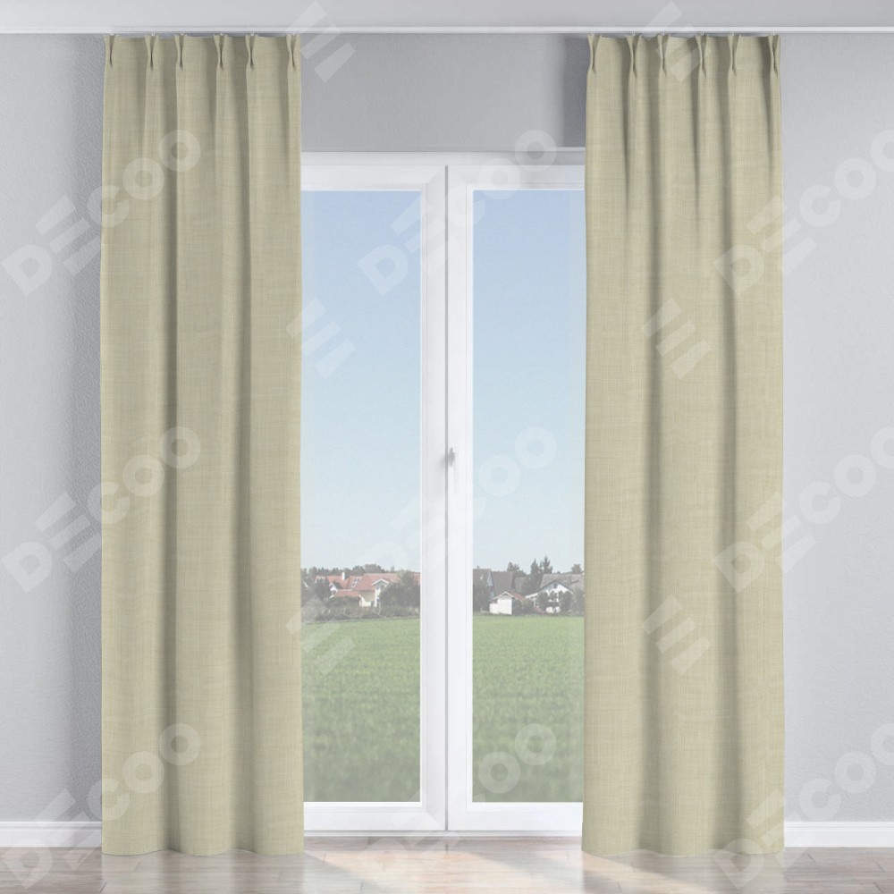 Комплект прямых штор, от производителя «Cortin», пошиты из ткани лён топлёное молоко, артикул ткани 104484. С изнаночной стороны в верхней части штор пристрачивается шторная лента с декоративными складками «Кустик». Для создания элегантных складок рекомендуемый коэффициент 1:2 (на 100 см. ширины проёма 200 см. ширины ткани). Важно! Ширина штор указана без учёта коэффициента сборки!