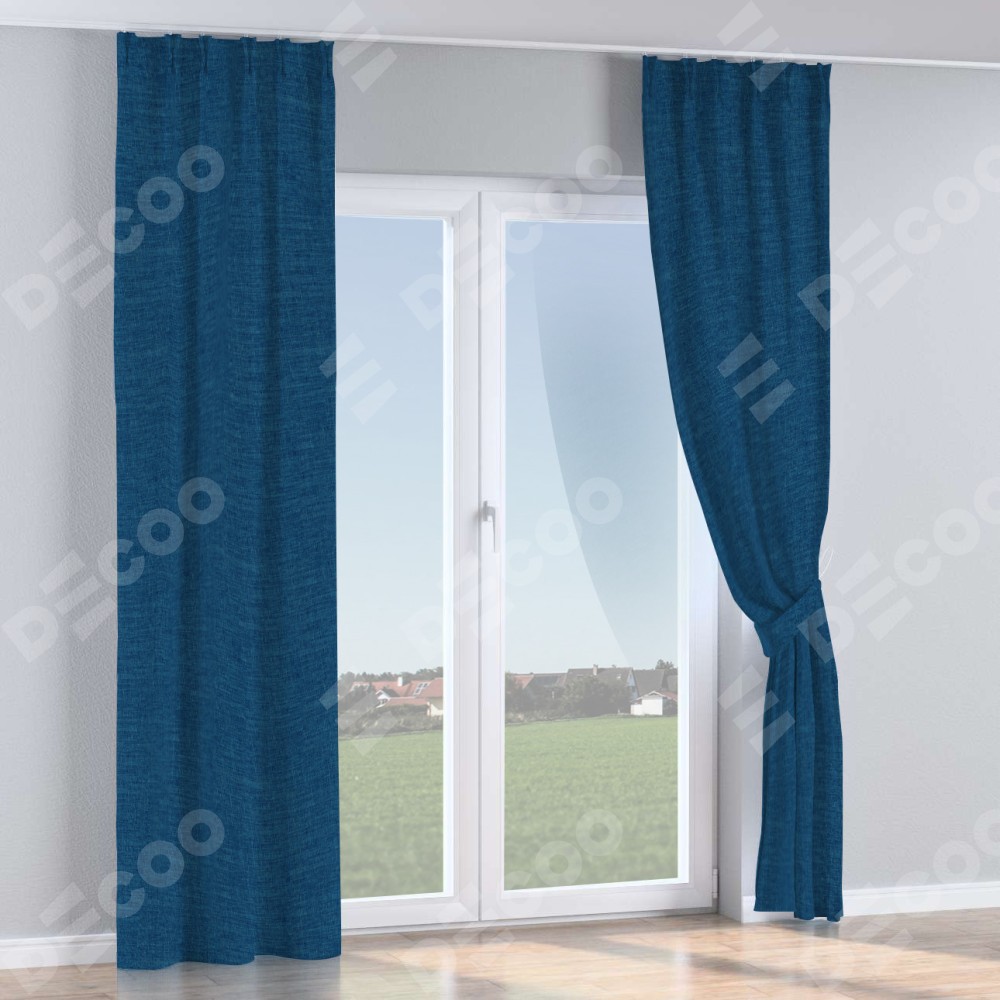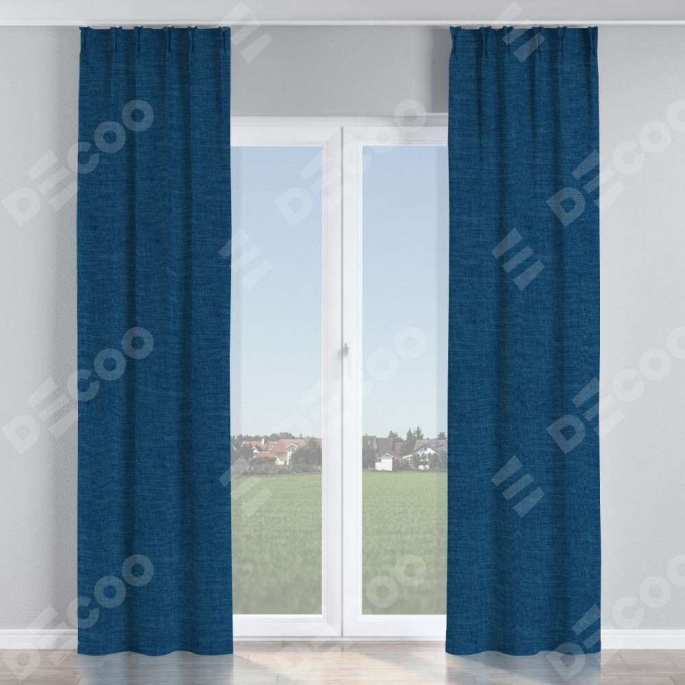 Комплект прямых штор, от производителя «Cortin», пошиты из ткани лён синий, артикул ткани 104496. С изнаночной стороны в верхней части штор пристрачивается шторная лента с декоративными складками «Кустик». Для создания элегантных складок рекомендуемый коэффициент 1:2 (на 100 см. ширины проёма 200 см. ширины ткани). Важно! Ширина штор указана без учёта коэффициента сборки!
