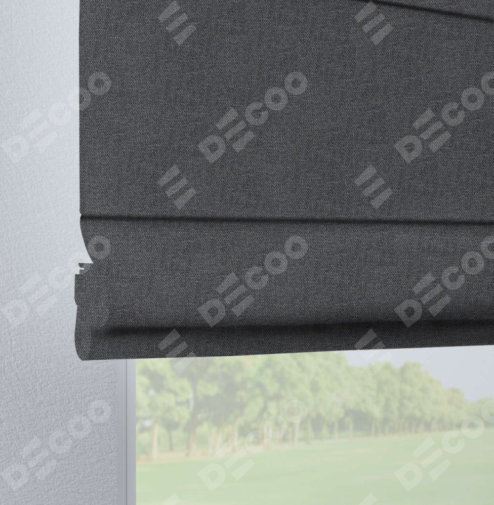 Римская штора производителя «Cortin», используется для проёма, пошита из ткани лён димаут графит, артикул ткани 140644. Данная модель пошита на петлях, комплектуется на выбор круглым карнизом и подходит для монтажа на стену. Римская штора на петлях имеет простую систему регулировки высоты, отличительным преимуществом данной модели является простой способ монтажа. Достаточно повесить ее на трубу и штора готова!