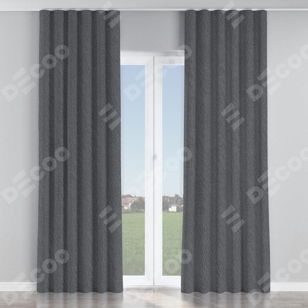Комплект прямых штор, от производителя «Cortin», пошиты из ткани лён димаут графит, артикул ткани 140644. С изнаночной стороны в верхней части штор пристрачивается шторная лента с декоративными складками «Волна». Для создания элегантных складок рекомендуемый коэффициент 1:2 (на 100 см. ширины проёма 200 см. ширины ткани). Важно! Ширина штор указана без учёта коэффициента сборки!